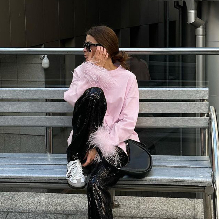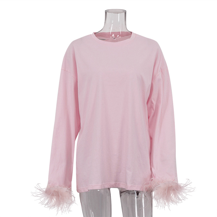 Внешняя торговля женская одежда 2025 весной сплошной хлопок с круглым вырезом с длинным рукавом