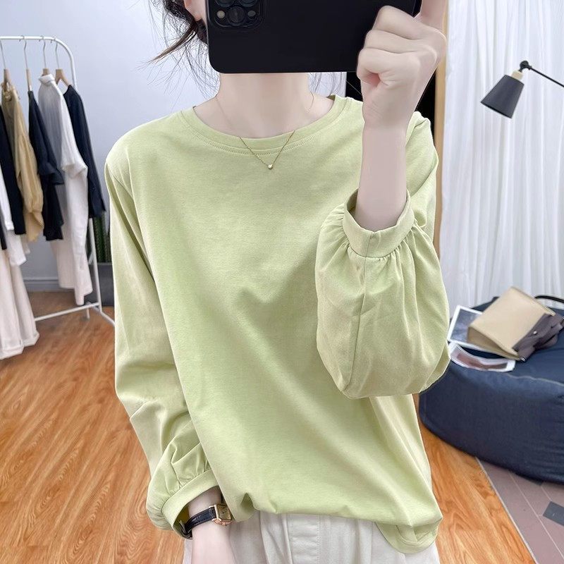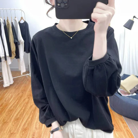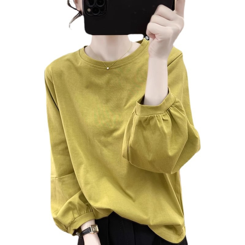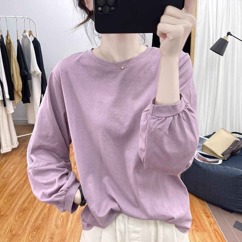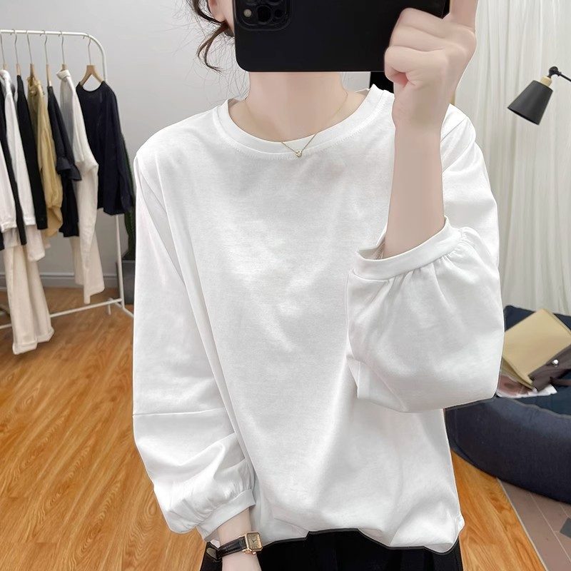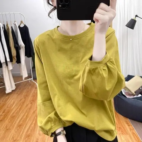 Главная страница > Осенний дизайн чувствует хлопчатобумажный свободный рукав с длинными рукавами футболка с женским уменьшением возраста топ 2024 новая нижняя рубашка