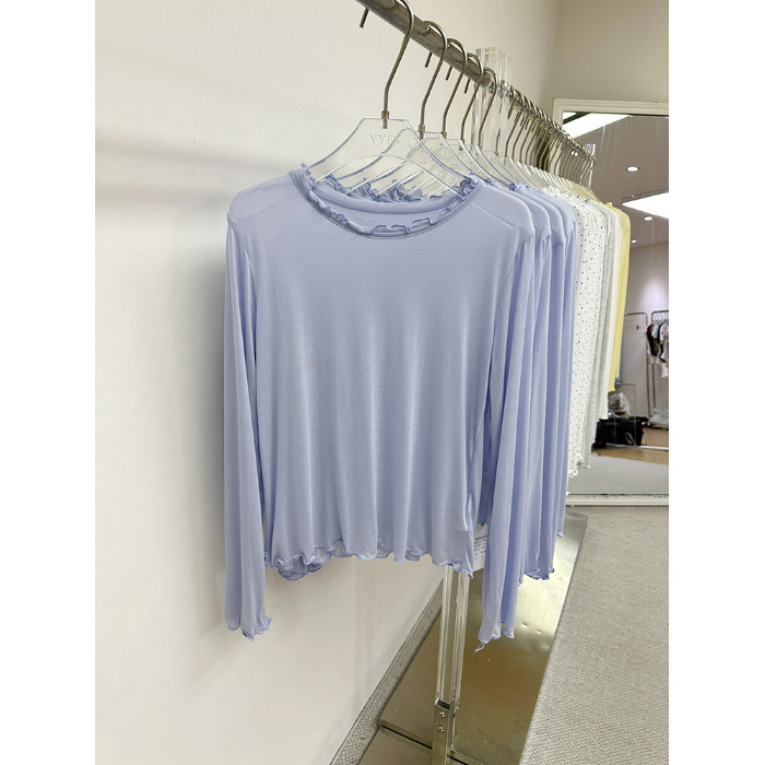 Главная страница > Яркая солнцезащитная футболка с длинными рукавами и рюшами для женщин, изготовленная из лиоцелла Tencel, с мягким и драпированным коротким летним топом с кондиционером.
