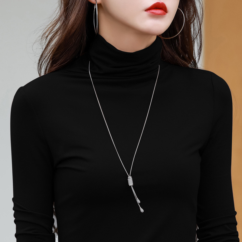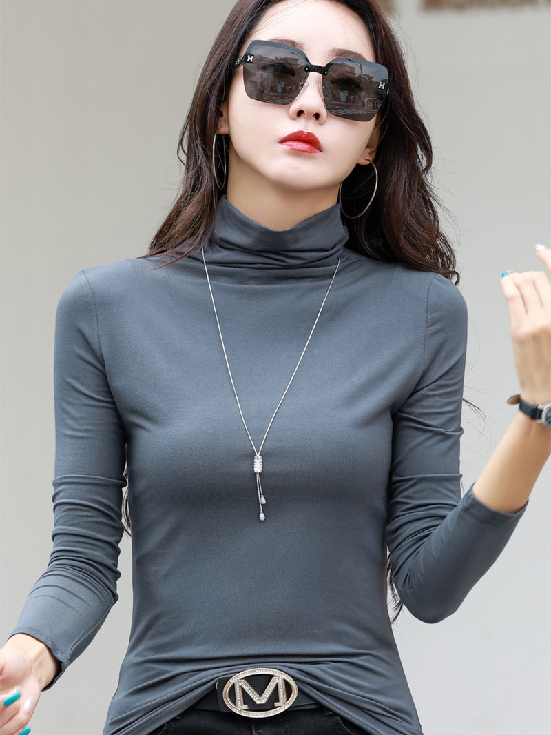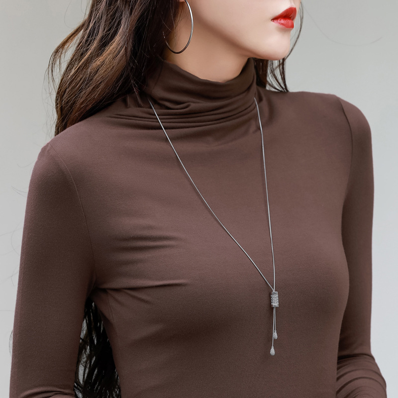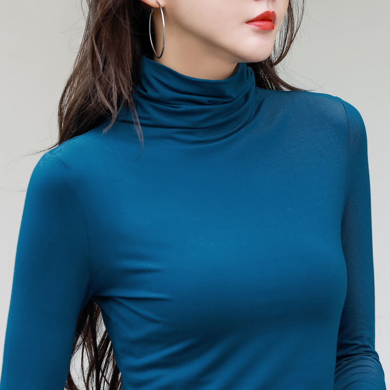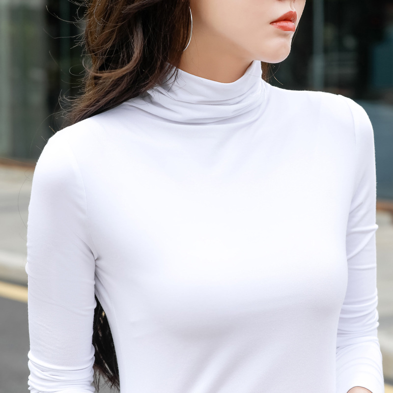 Главная страница > Модальная хлопковая эластичная приталенная Базовая рубашка с высоким воротником, Женская осенне-зимняя новая футболка с длинными рукавами, Универсальный женский топ
