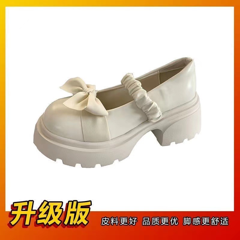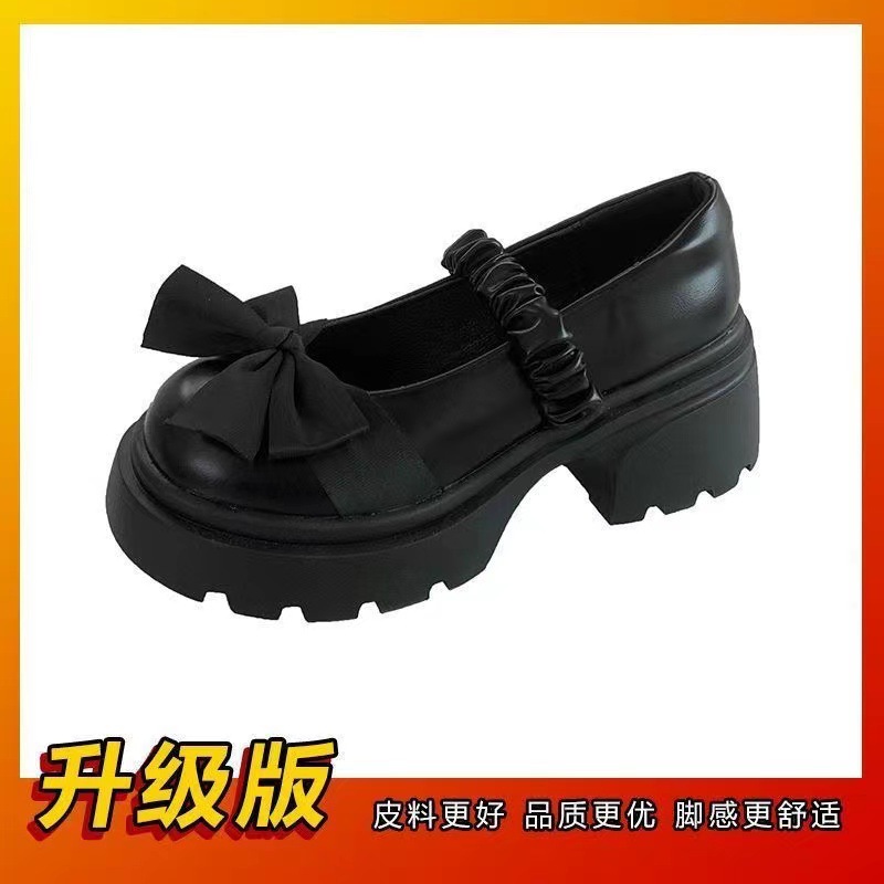 Маленькие кожаные туфли Мэри Джейн на толстой подошве для женщин, весенне-летние французские туфли на высоком каблуке jk на платформе, на плоской подошве с бантом на толстом каблуке, трансграничный экспорт