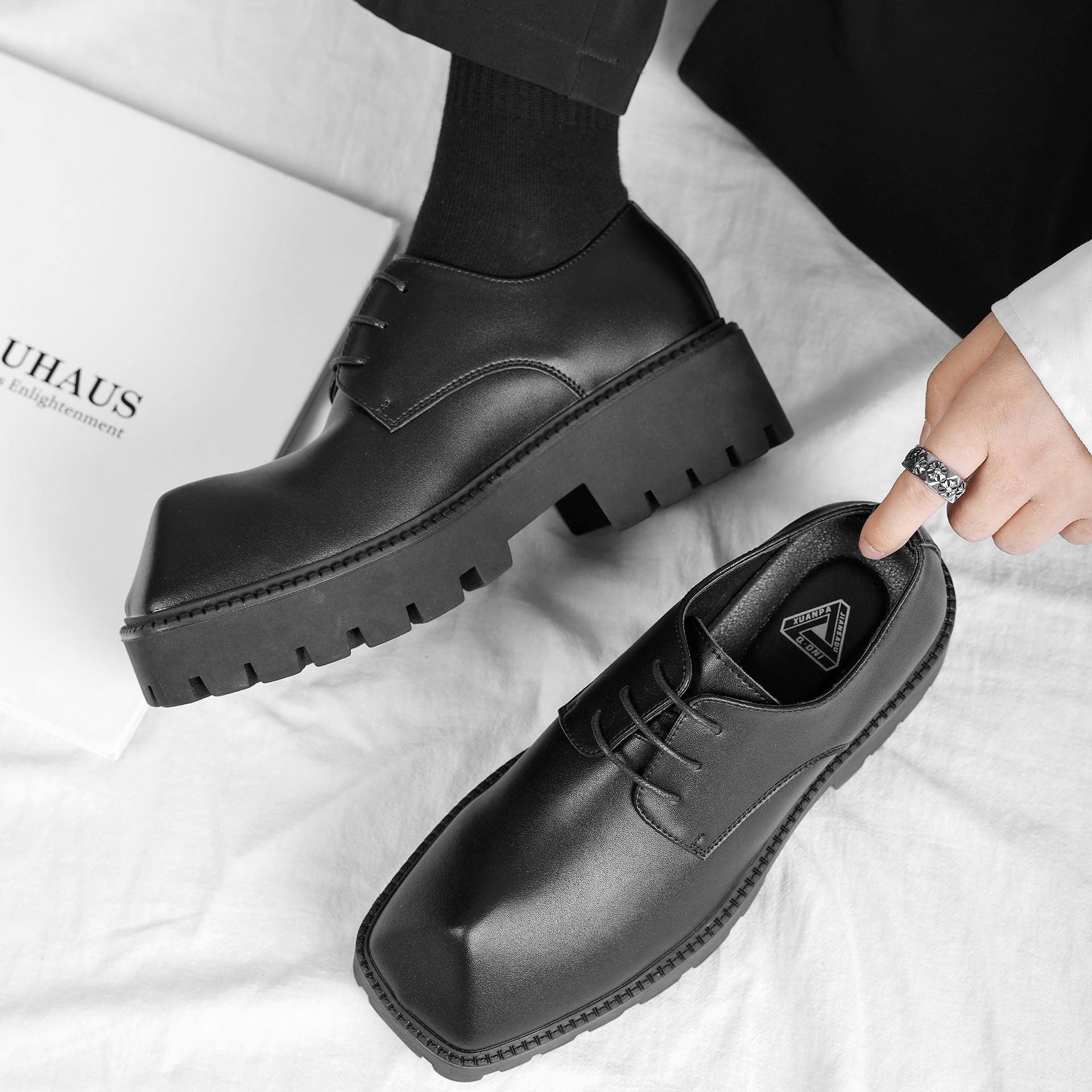 Главная страница > Новая мужская повседневная кожаная обувь из рога носорога, обувь Джокер на толстой подошве для подростков, лучшая мужская обувь, свадебная обувь в Корейском стиле