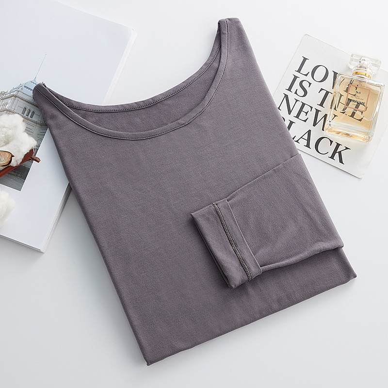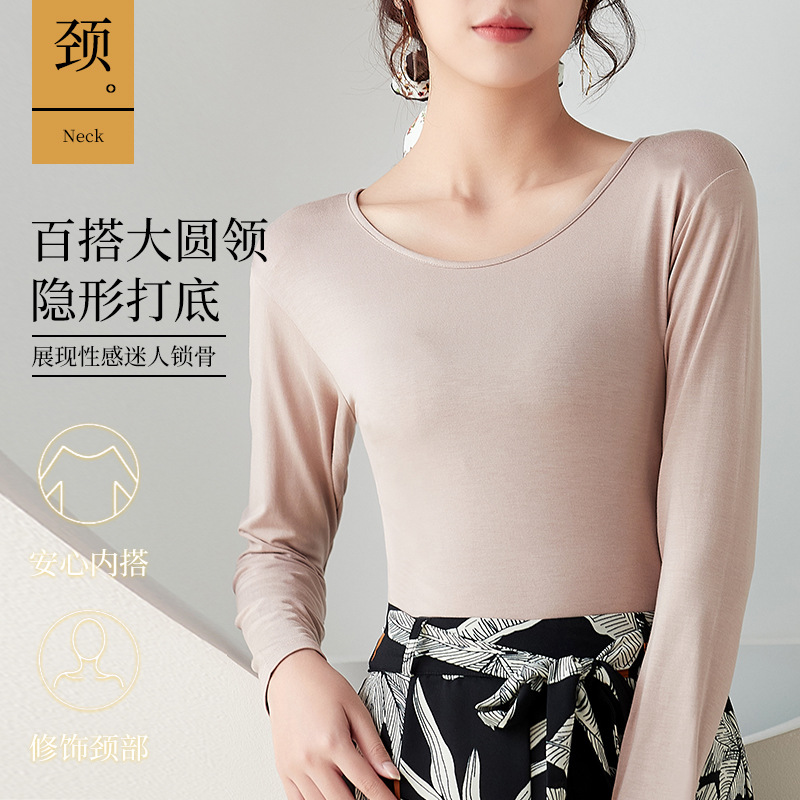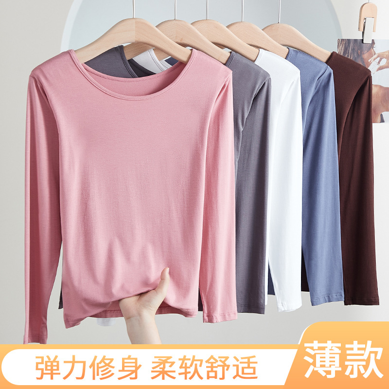 Главная страница > Модальная футболка с круглым вырезом и длинными рукавами, Женская Осенняя Новая женская однотонная Универсальная футболка, приталенная Базовая рубашка больших размеров для женщин