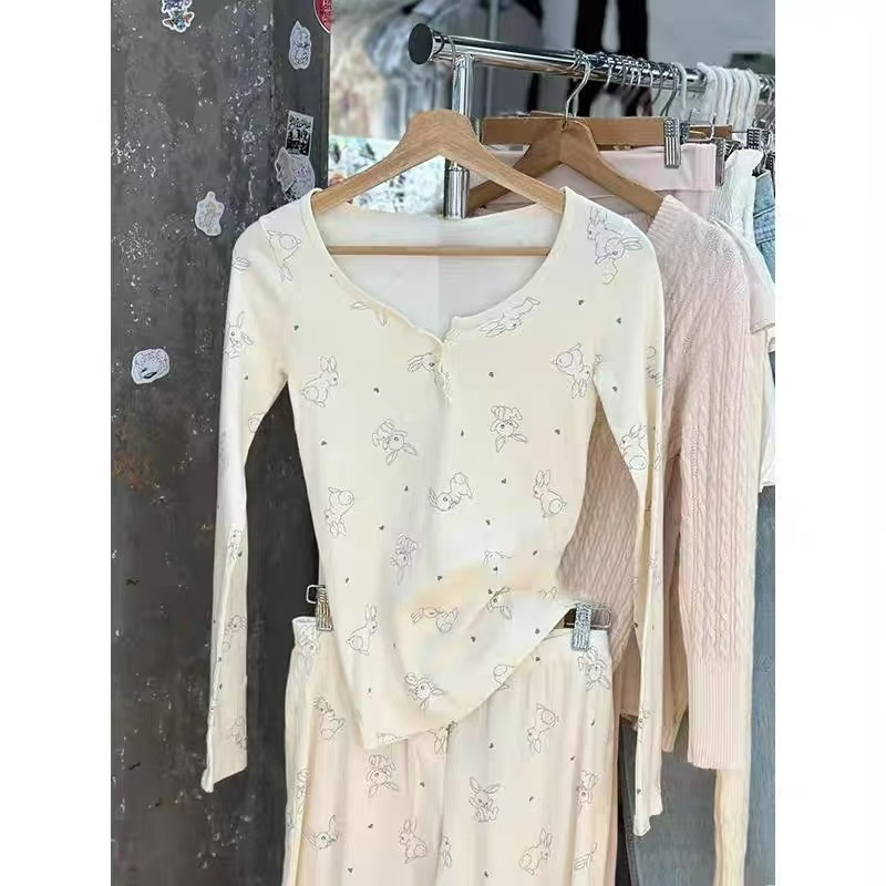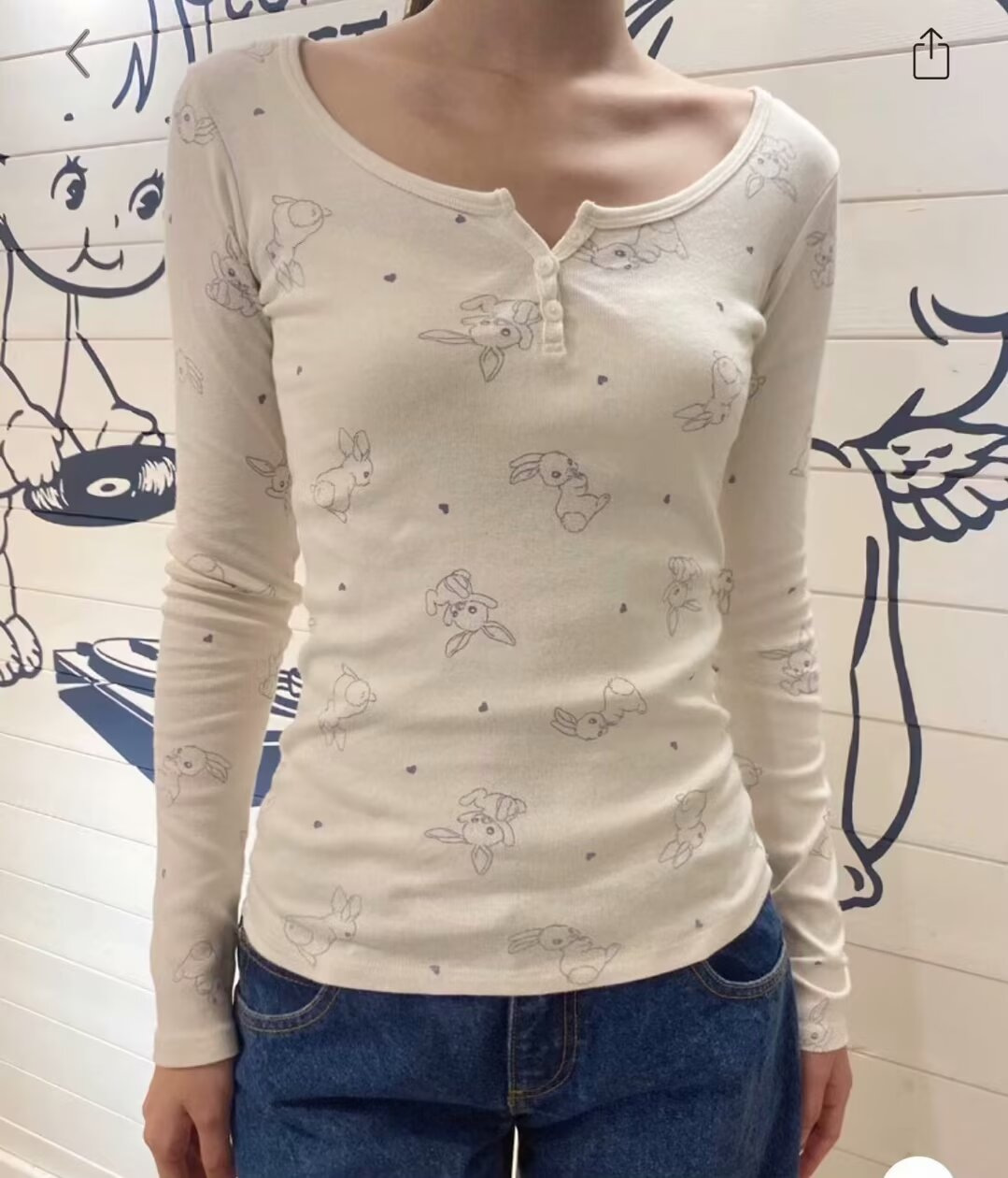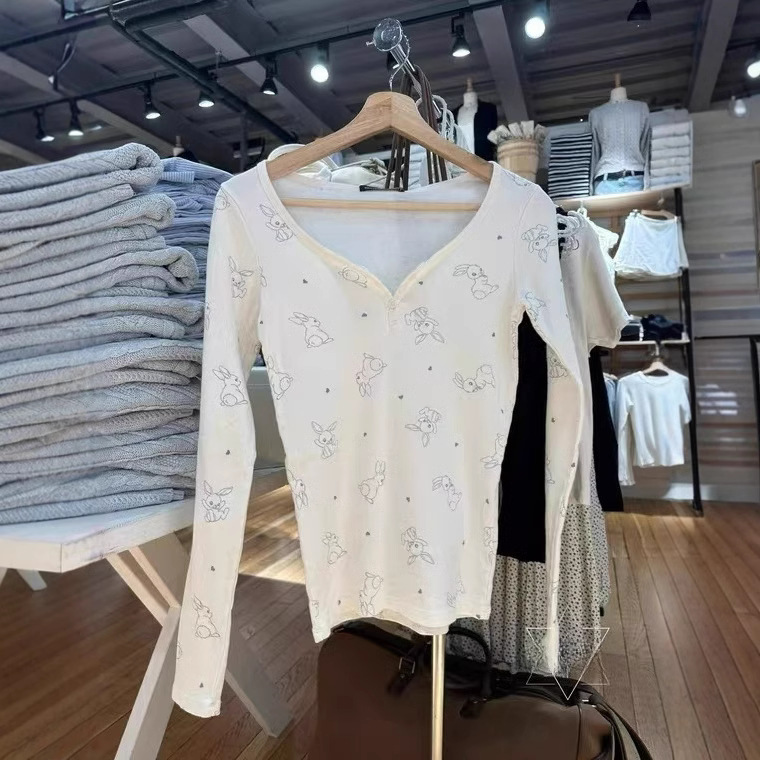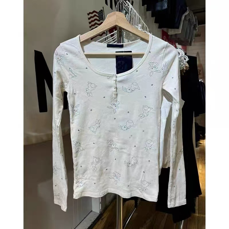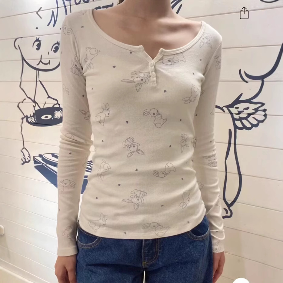 Главная страница > Новая женская приталенная футболка в американском стиле BM с длинным рукавом, на трех пуговицах, с принтом кролика, базовая модель, трендовая