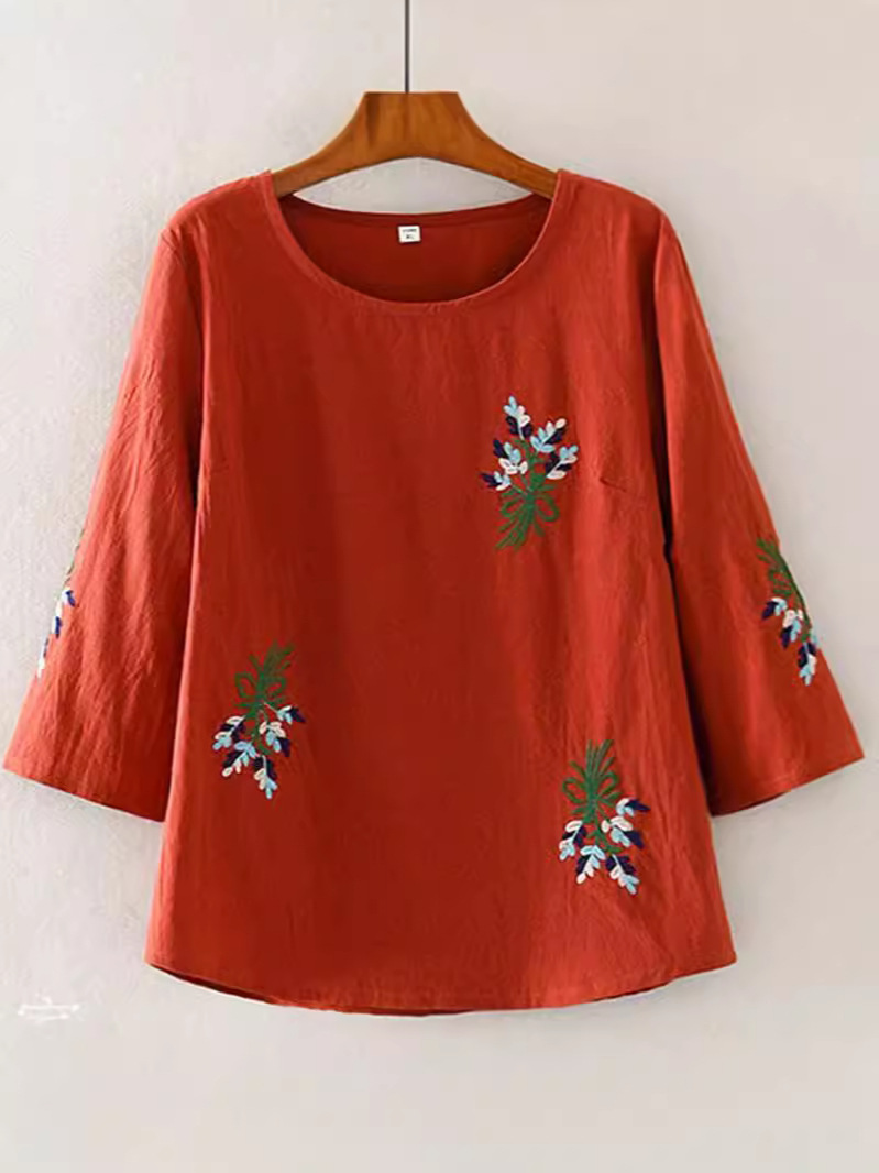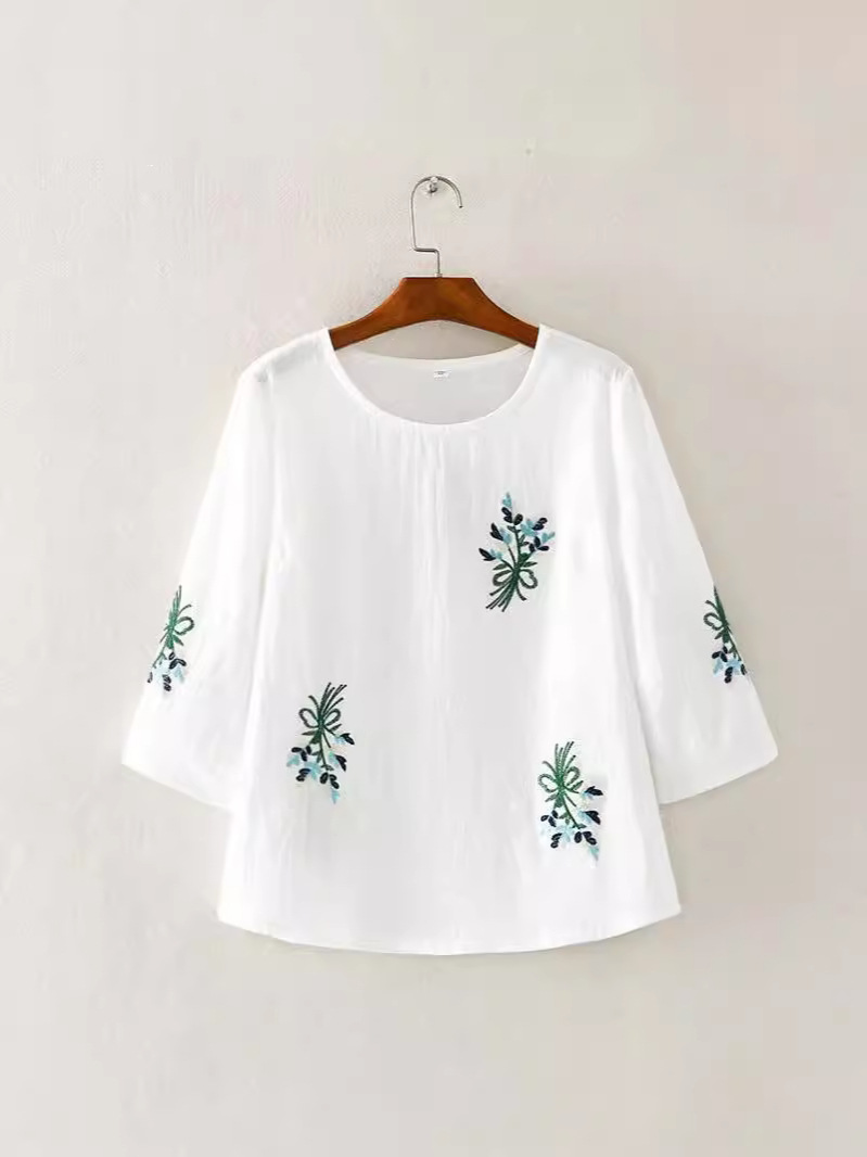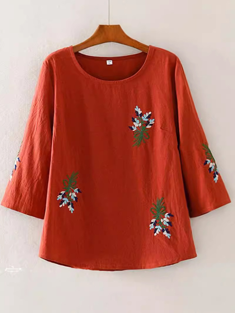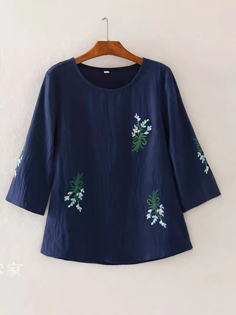 Мама наряд летняя корейская вышивка топ с круглым вырезом свободный плюс размер женский топ ленивый стиль повседневная футболка