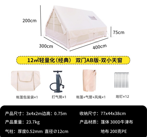 400*300*200 см (двойные двери из ткани Оксфорд 300D и двойные большие мансардные окна)