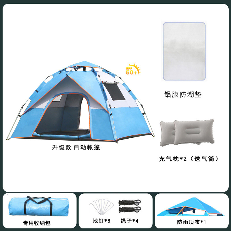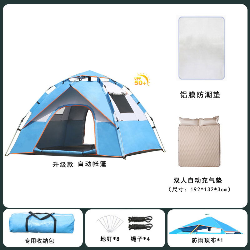 Модернизация двухдверного небесно-голубого + влагостойкий коврик + Надувная подушка + коврик для пикника