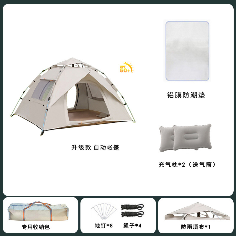 Две двери и два окна модернизированная палатка кремово-белая + Влагостойкая подушка + надувная подушка
