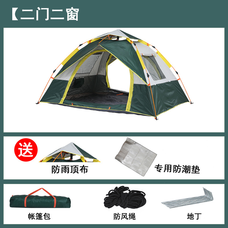 Две двери и два окна модернизированная палатка темно-зеленый + влагостойкий коврик