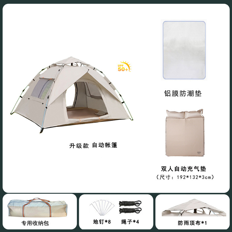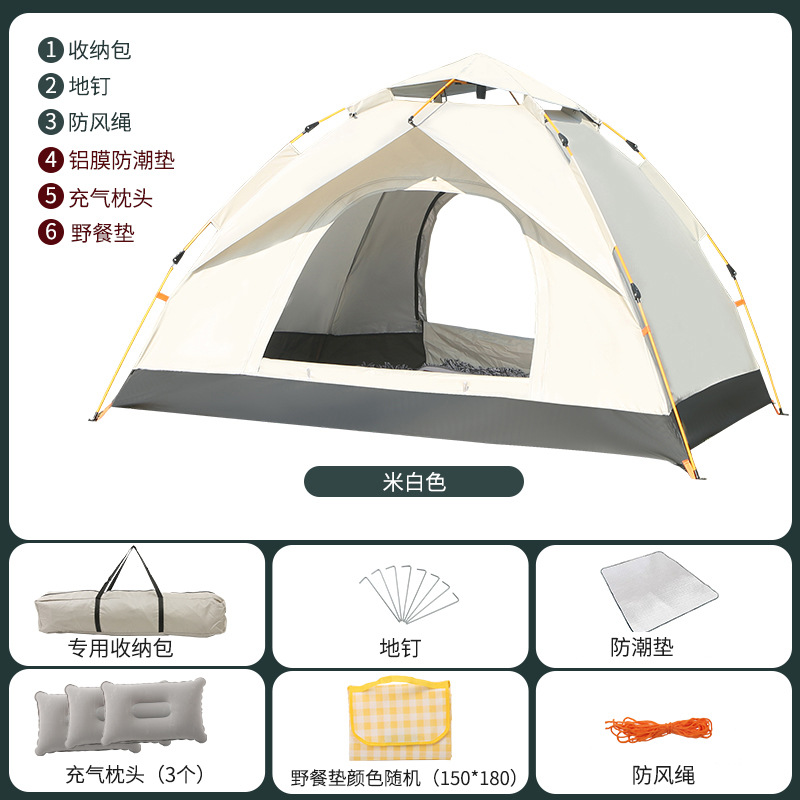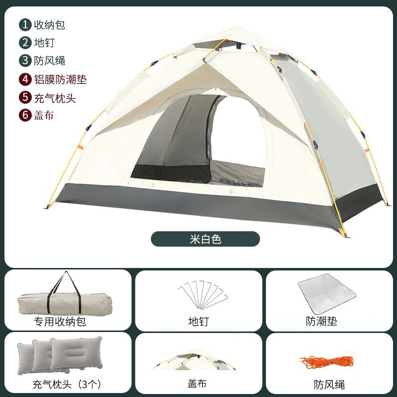 Модернизированный двухдверный кремово-белый + влагостойкий коврик + Надувная подушка + коврик для пикника