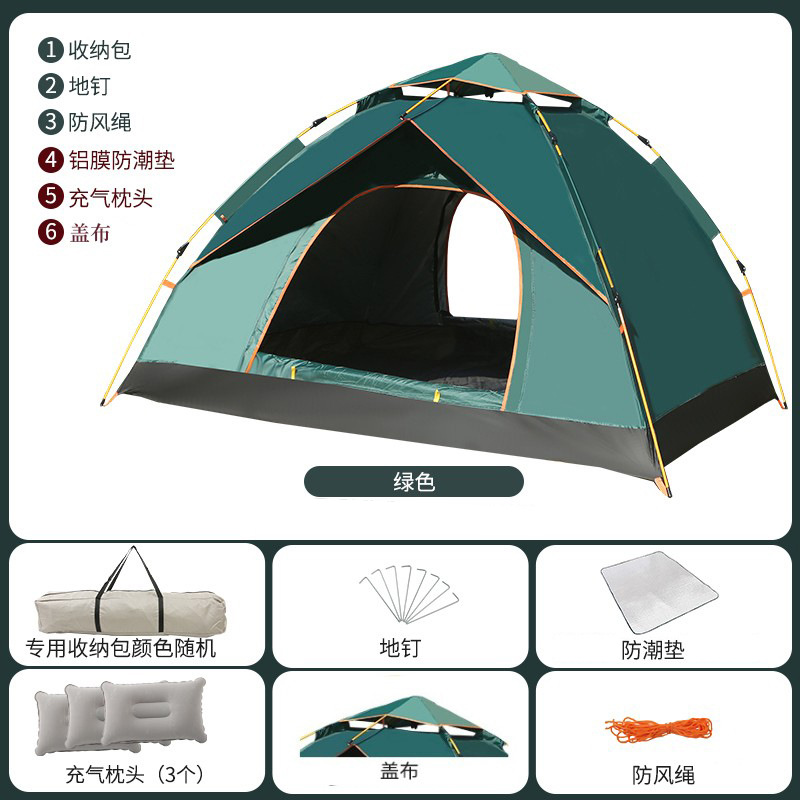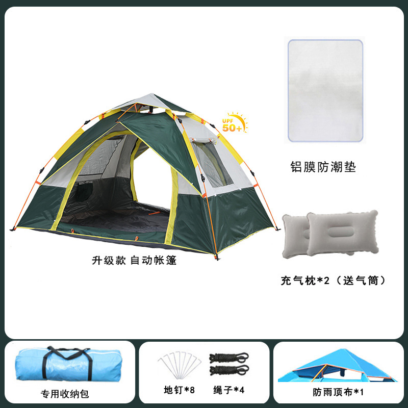 Обновите двухдверный чернильный зеленый + влагостойкий коврик + Надувная подушка + коврик для пикника