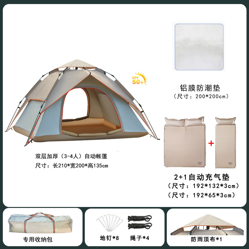 Настоящий двухслойный дождевой штурм облако золы + влагостойкий коврик + 3/4 надувной коврик