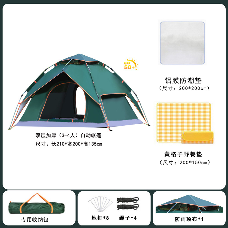 Настоящий двухслойный устойчивый к ливню темно-зеленый + влагостойкий коврик + коврик для пикника