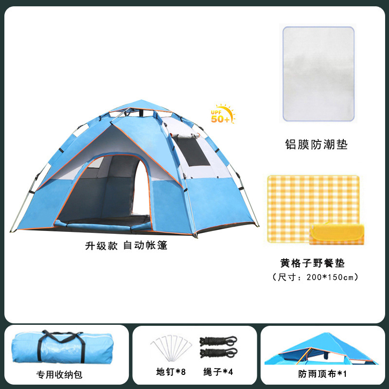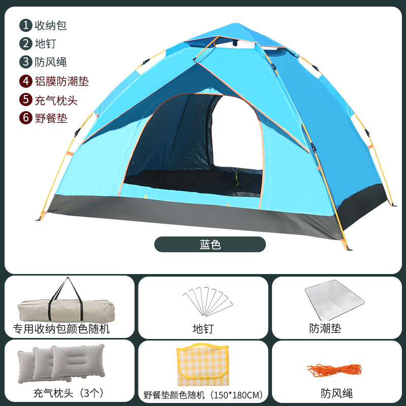 Две двери и два окна модернизированная палатка небесно-голубой + влагостойкий коврик + коврик для пикника