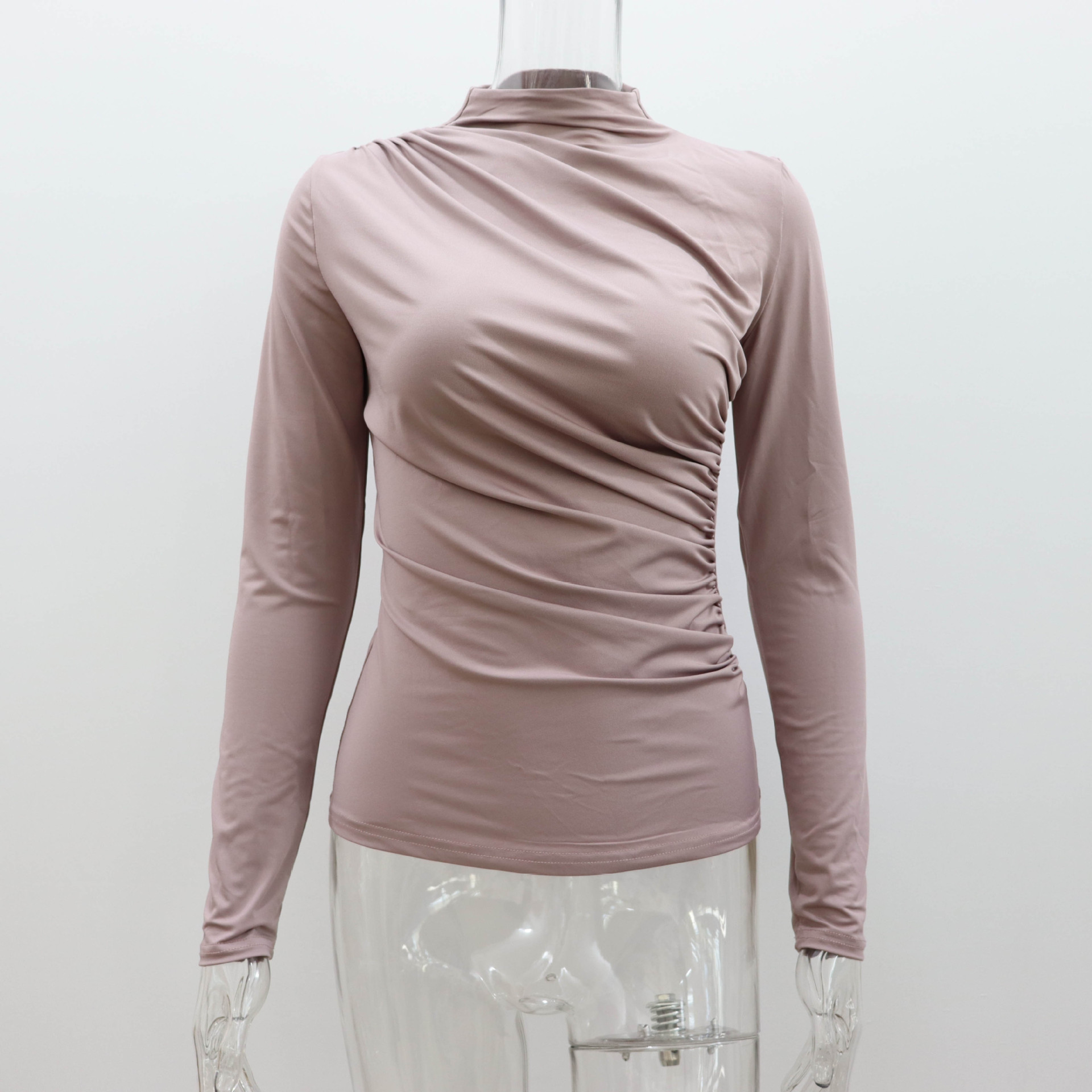 Главная страница > Европейские и американские экспортные женские топы с длинными рукавами, сексуальная новая футболка Amazon с воротником-стойкой, тонкие рубашки, топы оптом