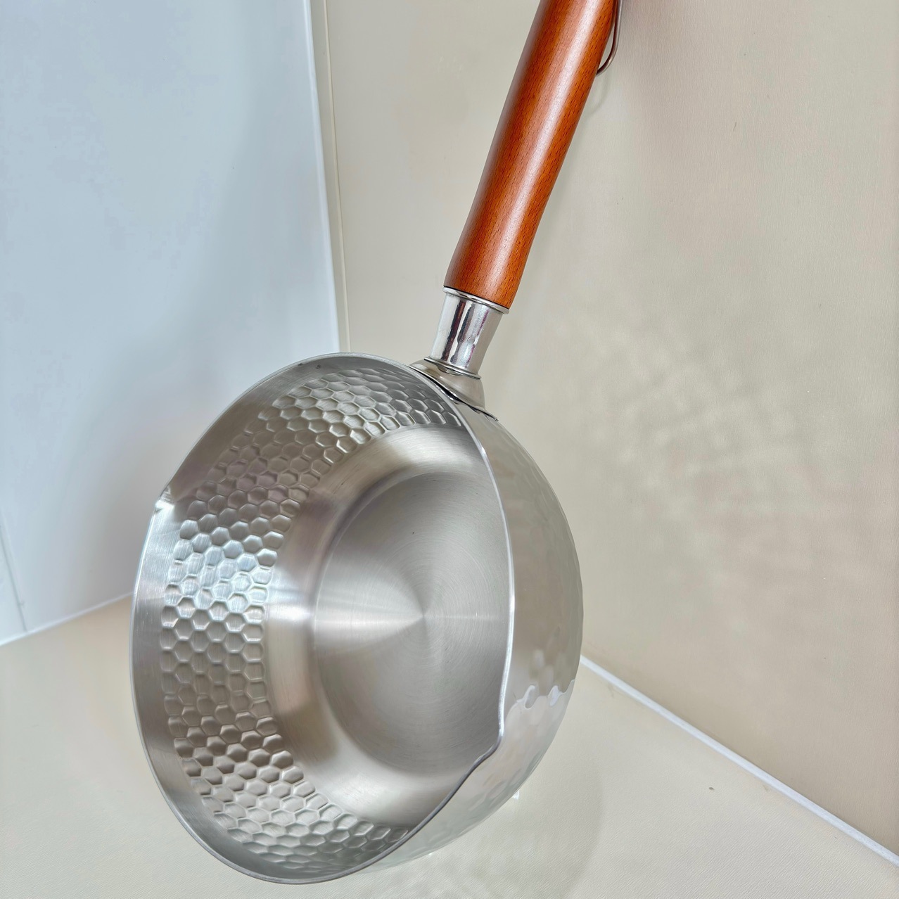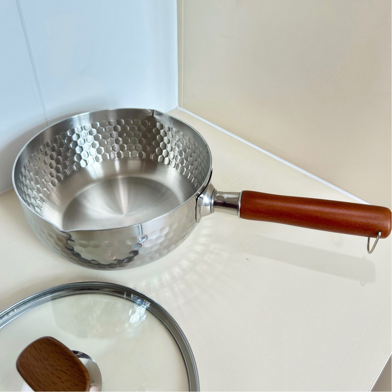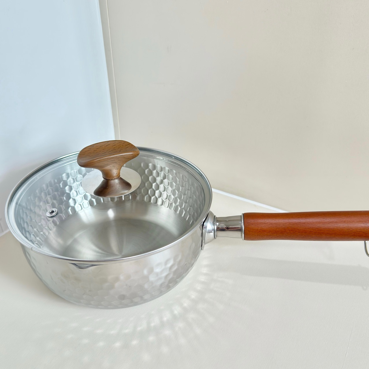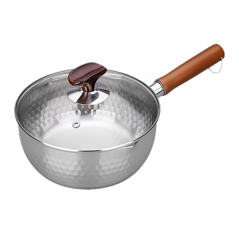18-10 кастрюля Yukihira, маленькая кастрюля для молока с деревянной ручкой в японском стиле, детская домашняя кастрюля для пищевых добавок, кастрюля для супа с узором в виде молотка, кастрюля с антипригарным покрытием, высокий внешний вид
