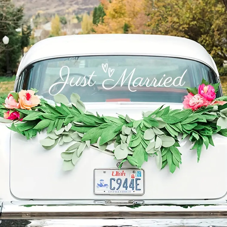 Just Married Английский Свадебные наклейки Самоклеящаяся виниловая наклейка автомобиля трансграничные прямые продажи AYX89