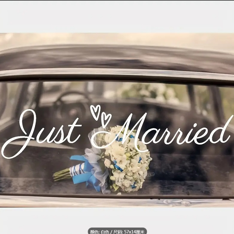 Главная страница > Just Married Английский Свадебные наклейки Самоклеящаяся виниловая наклейка автомобиля трансграничные прямые продажи AYX89
