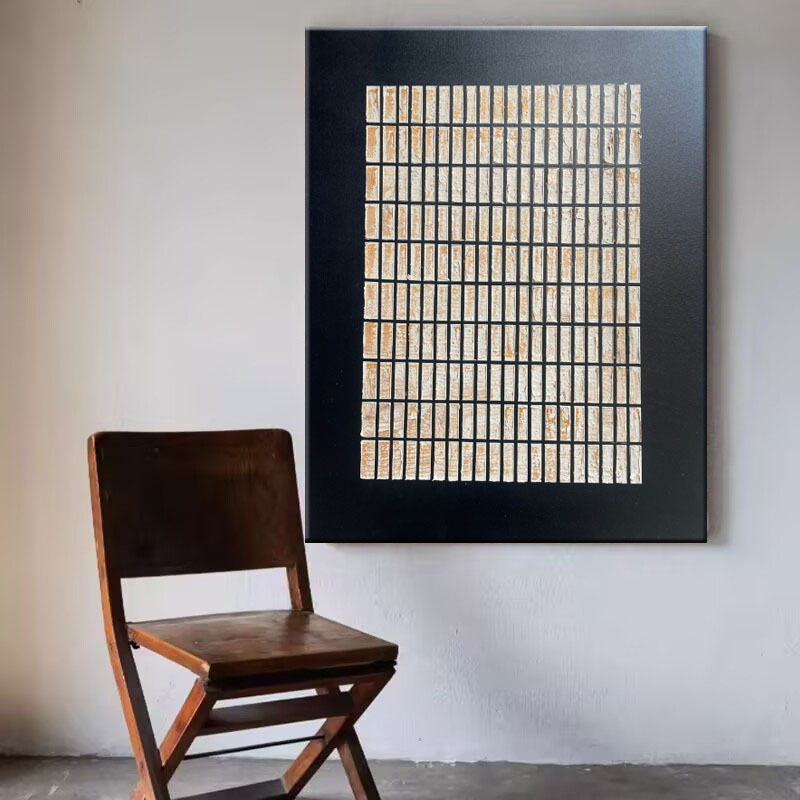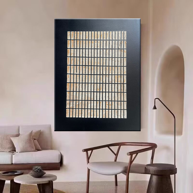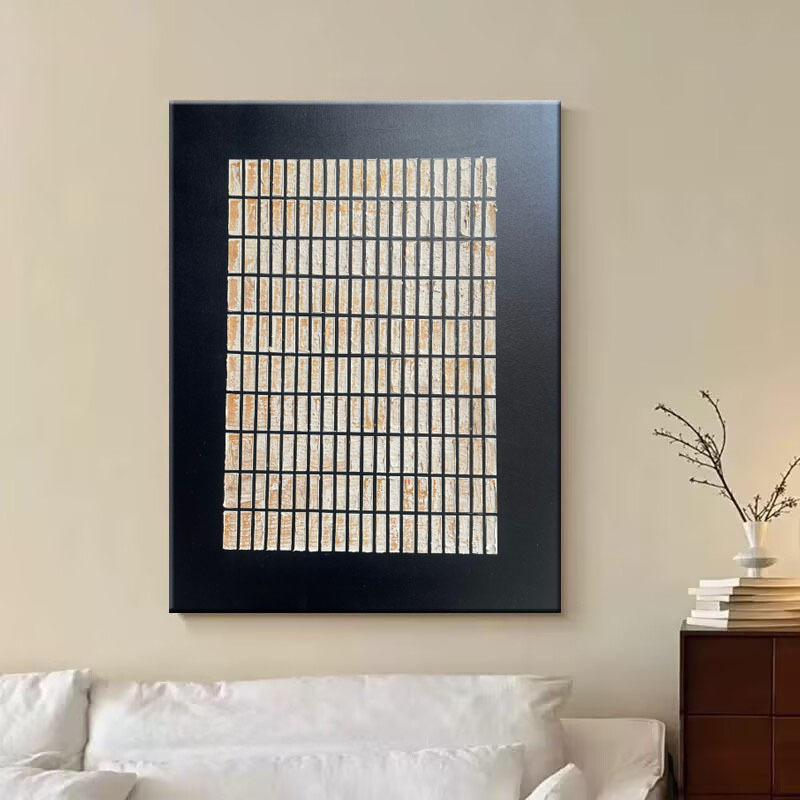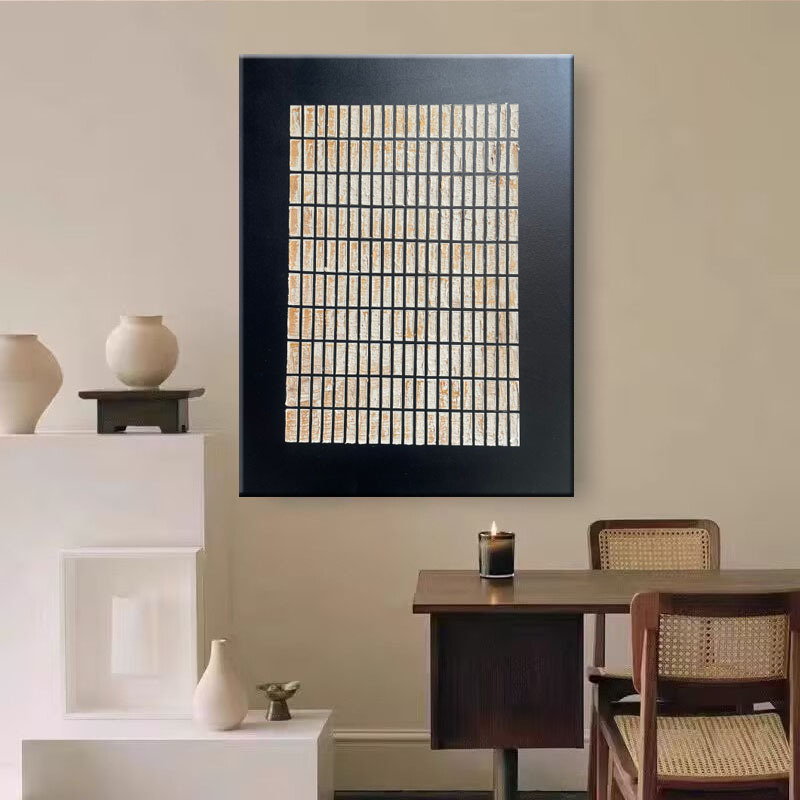 Главная страница > Чисто ручная роспись маслом в стиле ваби-саби, ниша для гостиной, входная декоративная картина, черно-белая линия, стерео текстура, картина B&B, подвесная картина