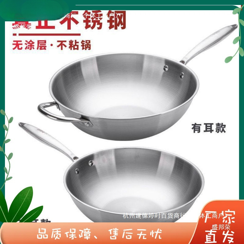 Немецкий безмасляный антипригарный вок из нержавеющей стали, бытовой вок без покрытия, индукционная плита, газовая маленькая кастрюля с одинарным дном
