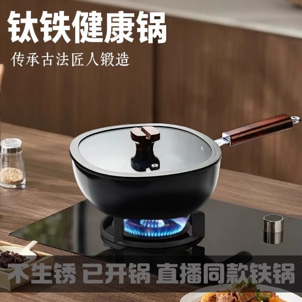 Главная страница > Чугунный горшок из титана без покрытия, супер антипригарный бездымный вок, вок большой емкости, универсальный горшок с большим животом в древнем стиле.