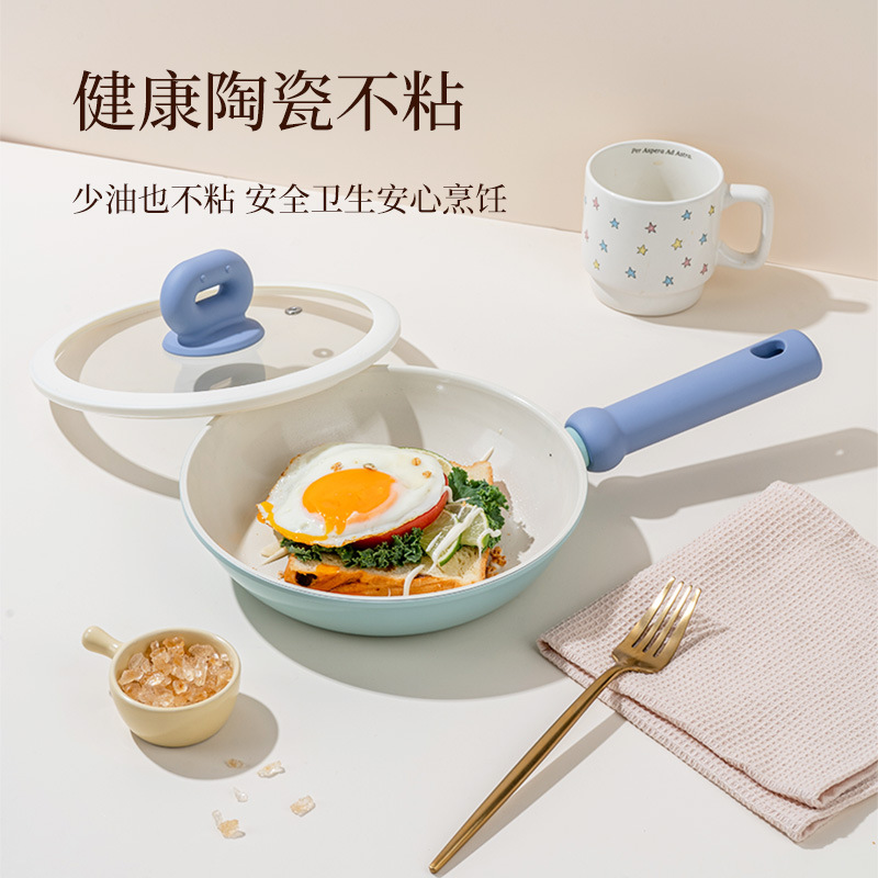 [Керамическая внутренняя стенка, здоровая и антипригарная] Сковорода диаметром 20 см с крышкой