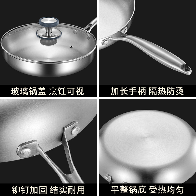 Главная страница > Трансграничный универсальный сковородой-гриль из нержавеющей стали 304, утолщенный, без покрытия, трехслойная стальная сковорода, для домашней кухни, для жарки стейков.