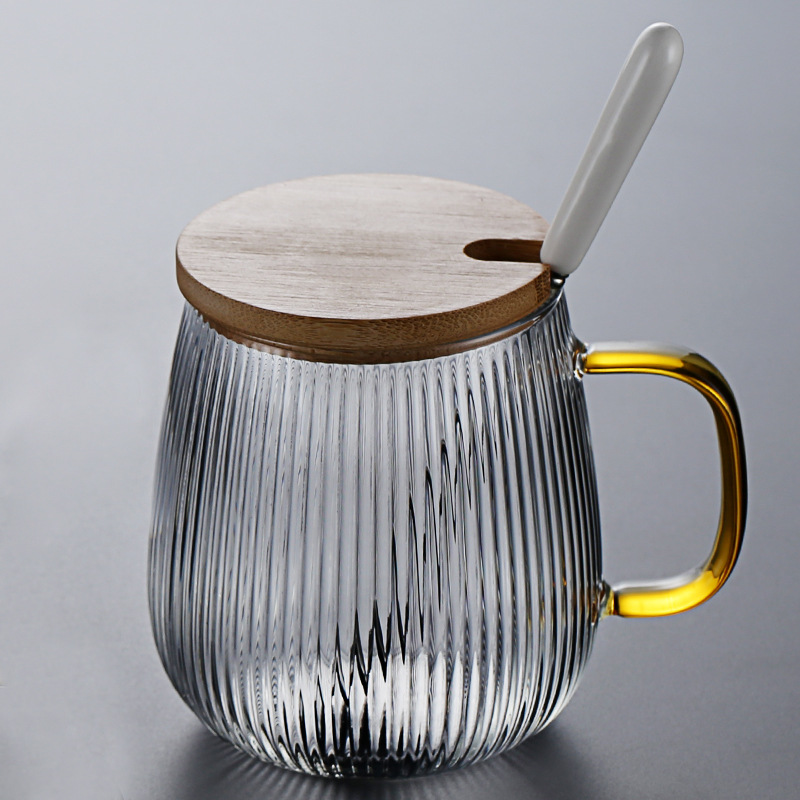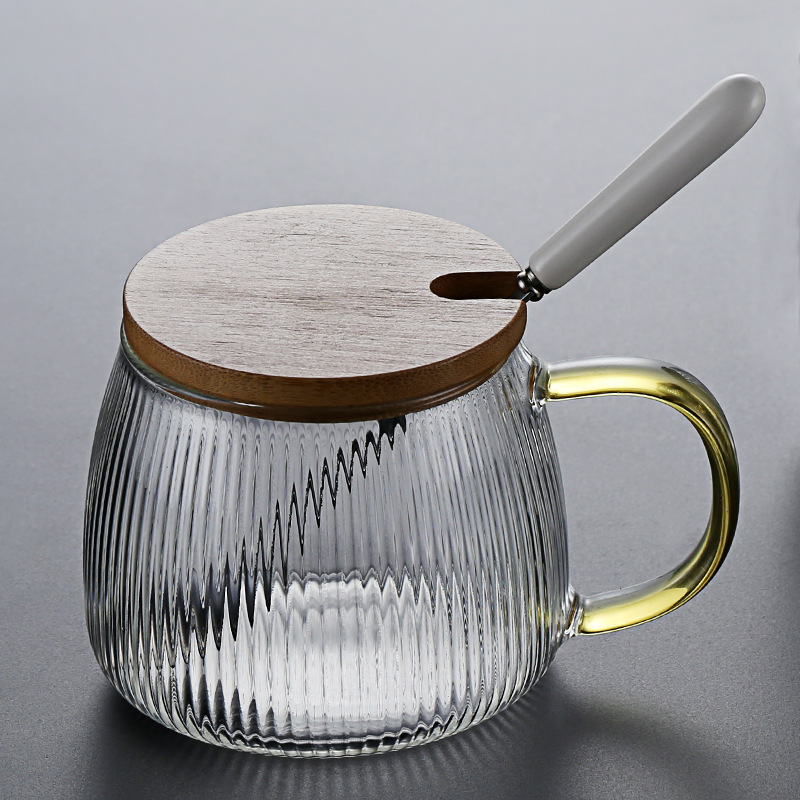 Главная страница > Новый японский стиль Полосатое стекло с крышкой вертикальный узор чашка для воды чашка для завтрака кружка овсяная чайная чашка для молока