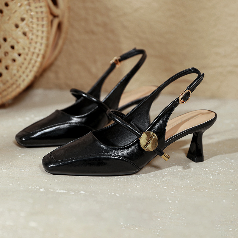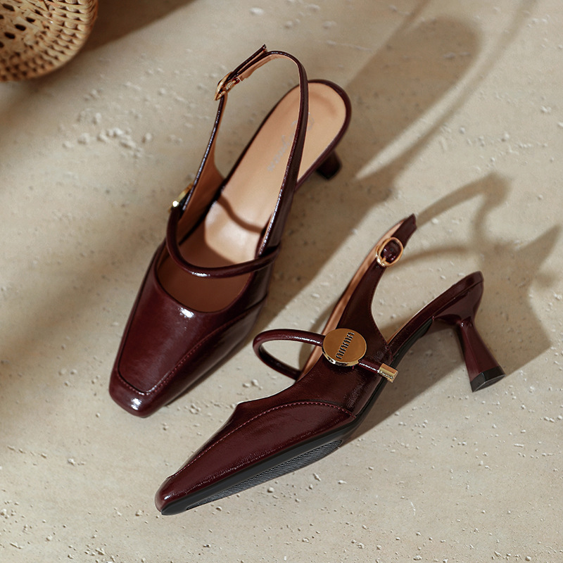 Главная страница > Французские босоножки Баотоу задние туфли на высоком каблуке женские каблуки 2025 новый летний винно-красный квадратный задний пустые одиночные туфли