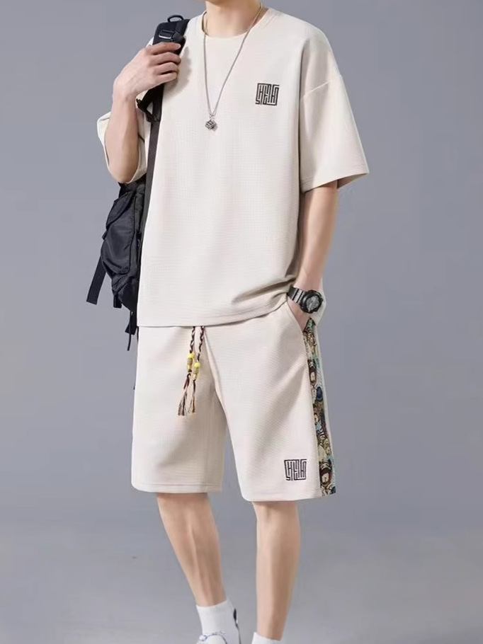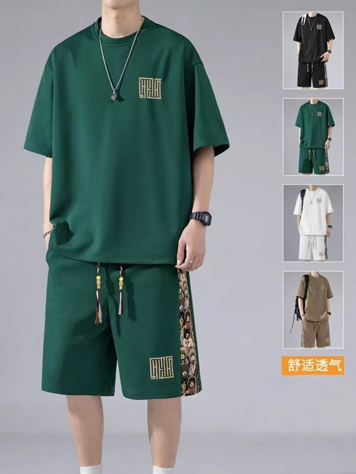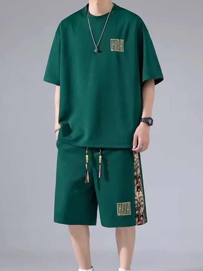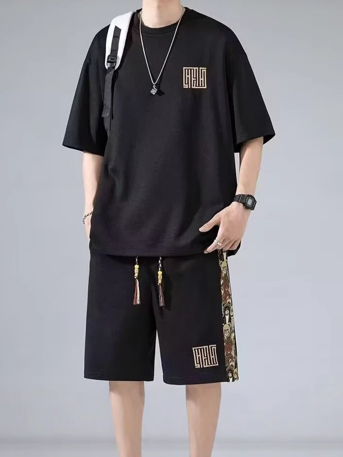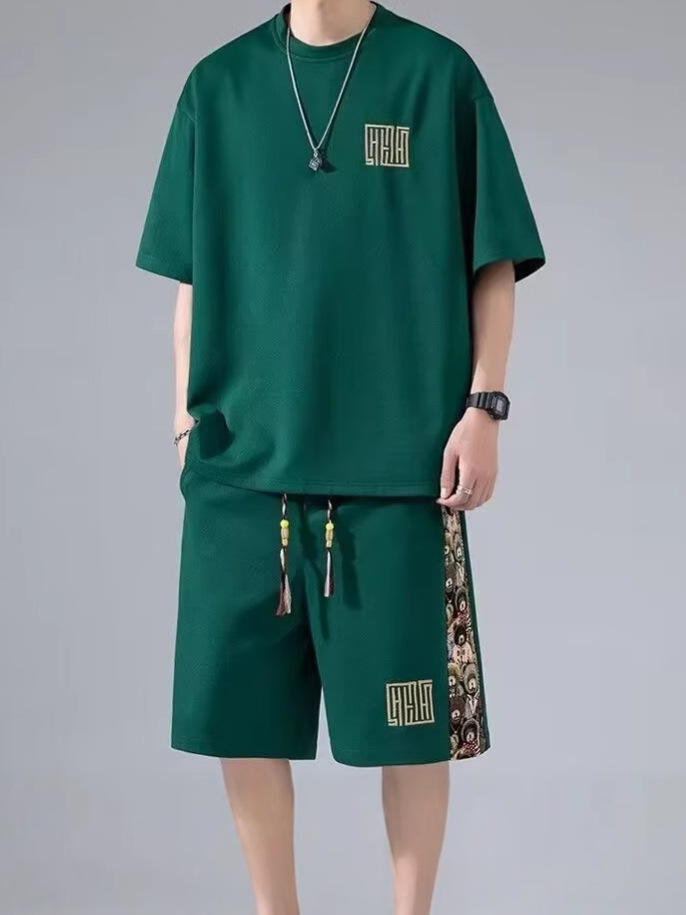 Главная страница > Спортивный костюм китайского стиля для мужчин летняя национальная волна тонкая свободная футболка приливная вышивка случайный набор из двух частей
