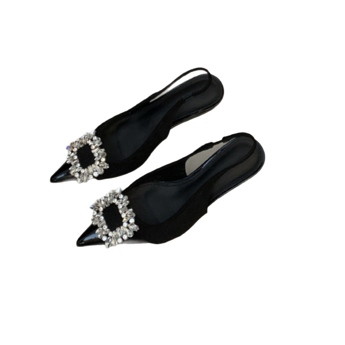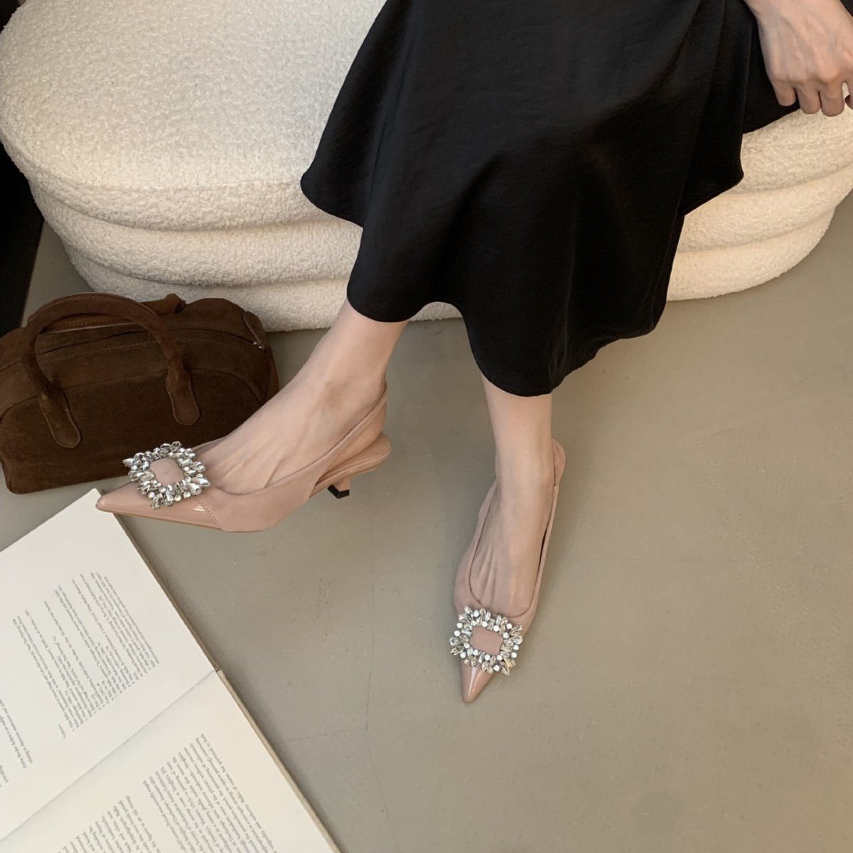 Главная страница > Вечерний ветерок темперамент с острым стразом на высоком каблуке Женская обувь 2025 новый задний пустой низкий каблуке сандалии