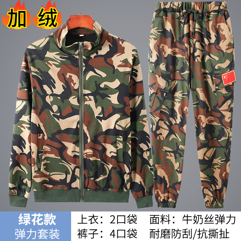 Серый камуфляжный эластичный костюм [плюс бархат]