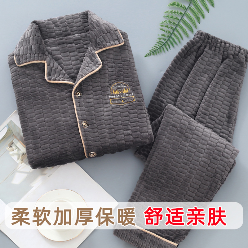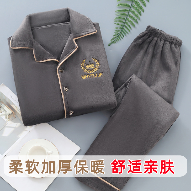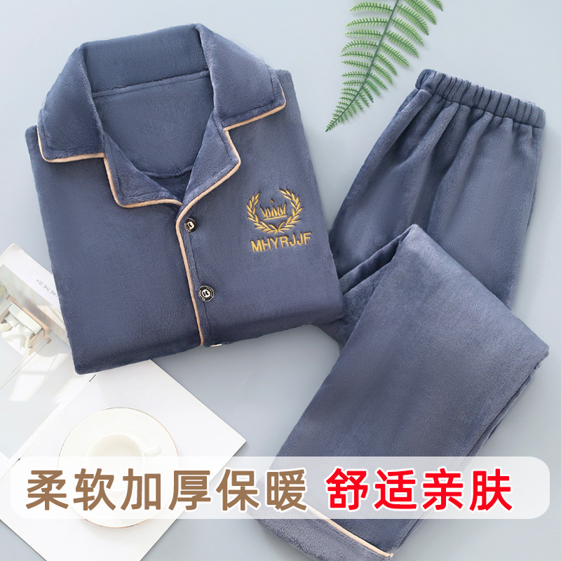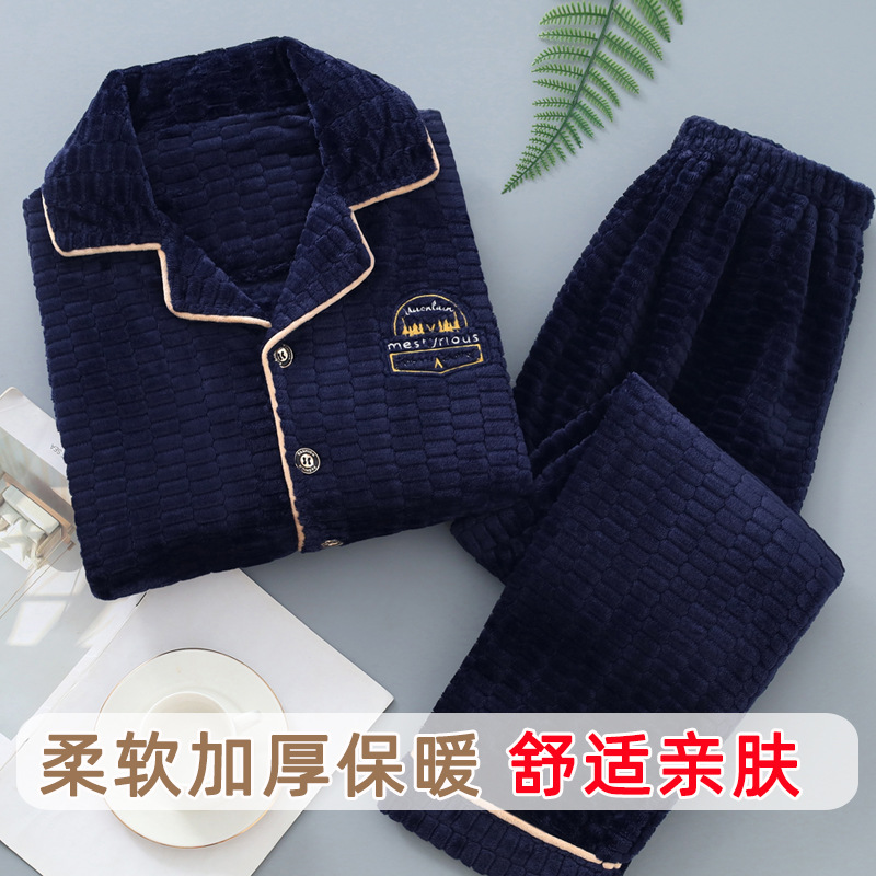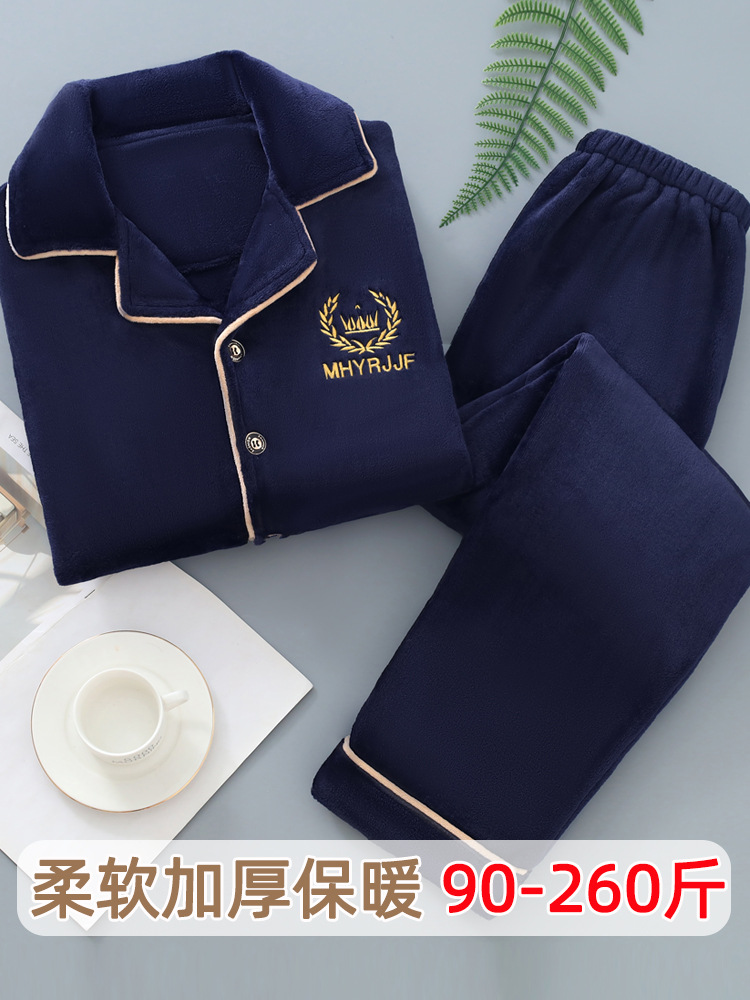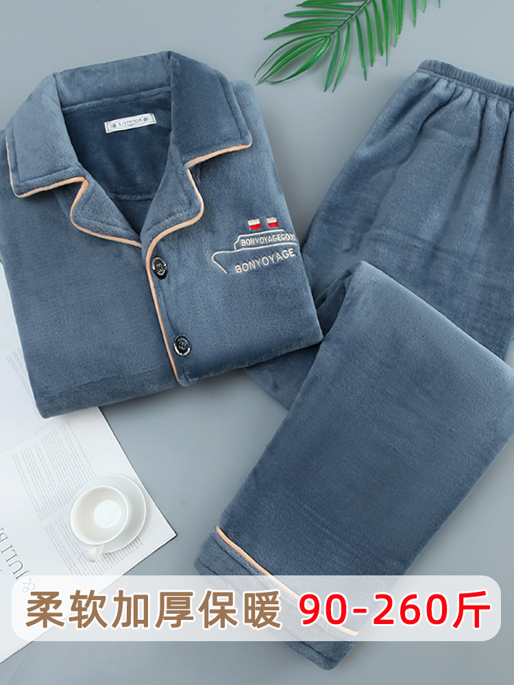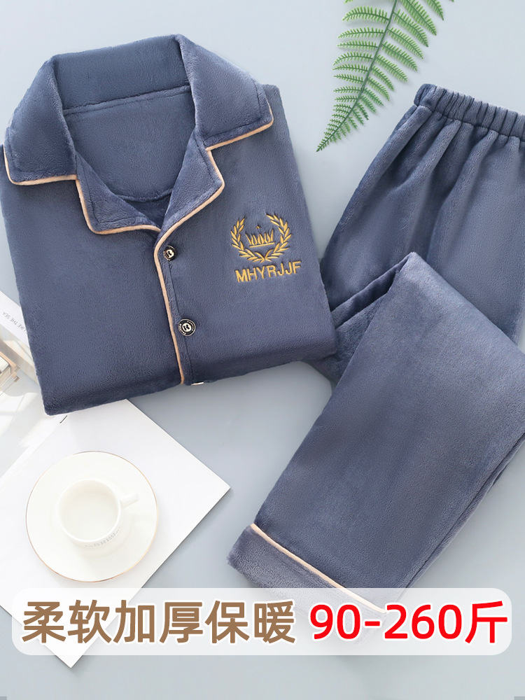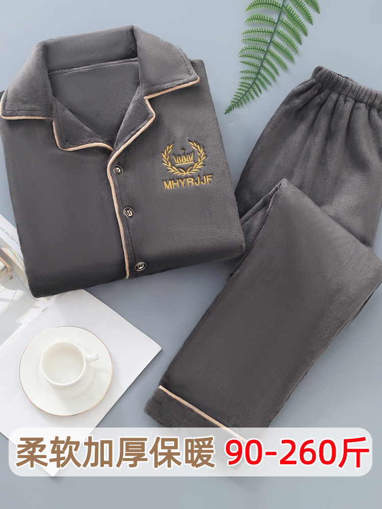 Пижама мужской осенью и зимой плюшевая утолщение теплый коралловый бархат плюс большой размер фланелевая домашняя одежда