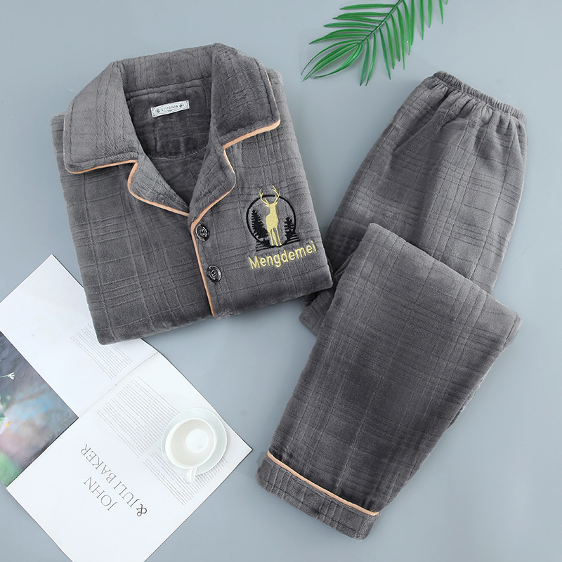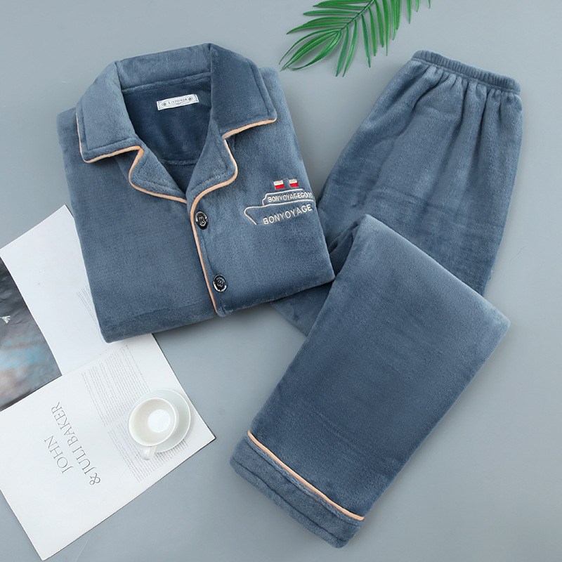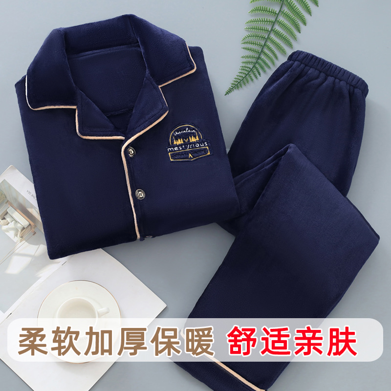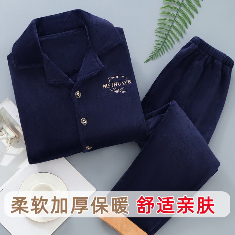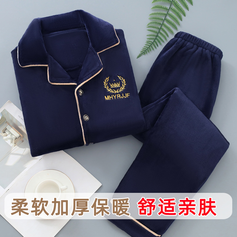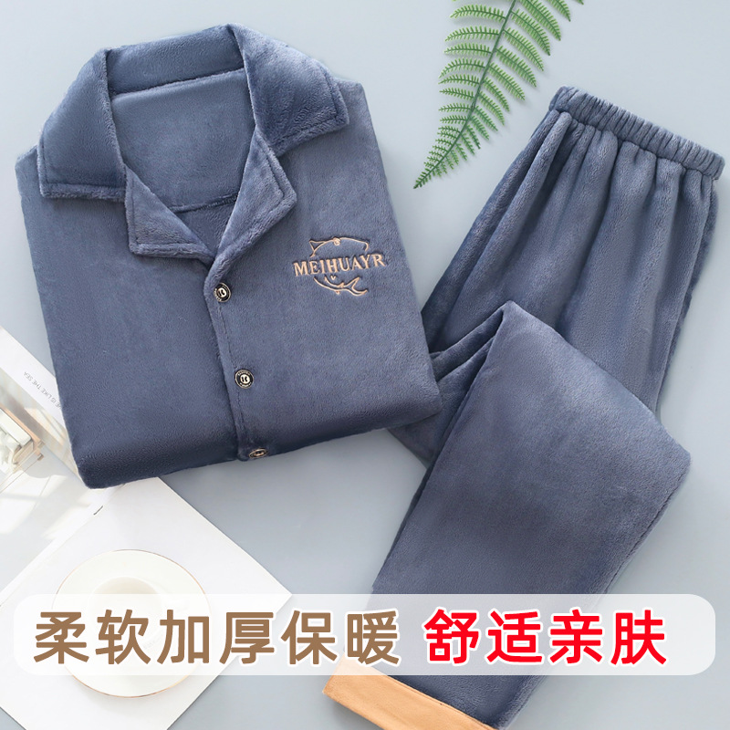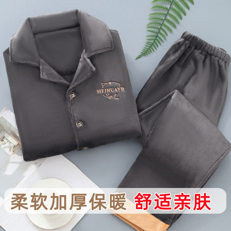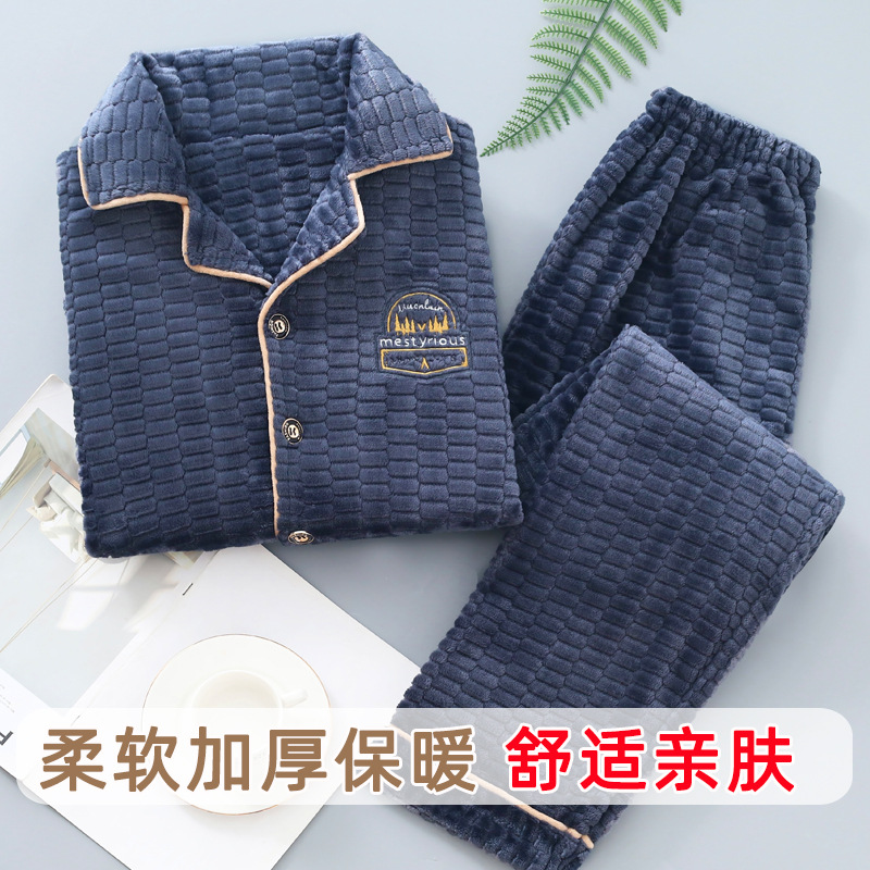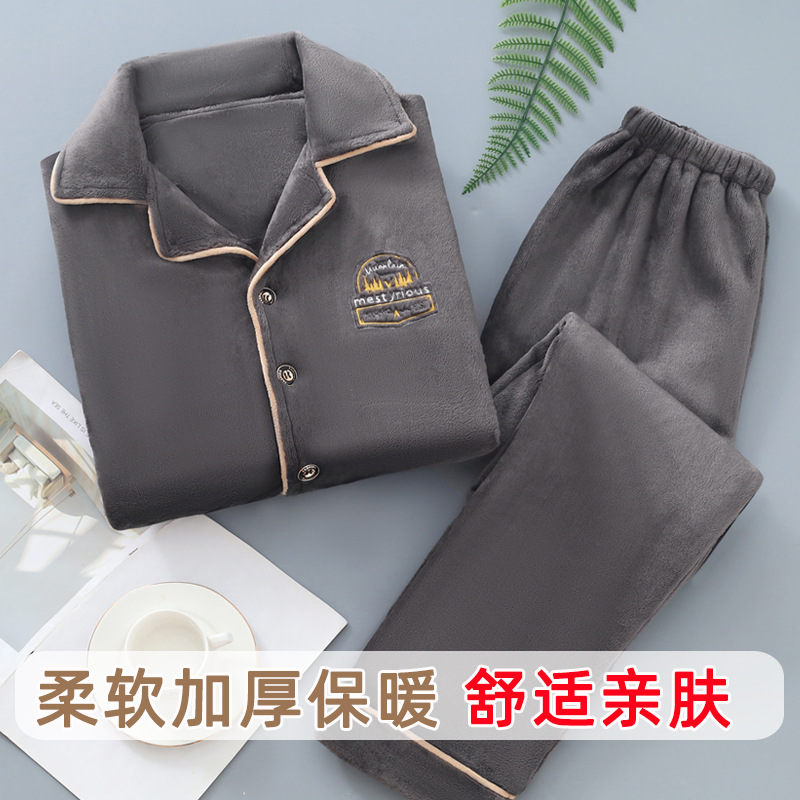 Пижама мужской осенью и зимой плюшевая утолщение теплый коралловый бархат плюс большой размер фланелевая домашняя одежда