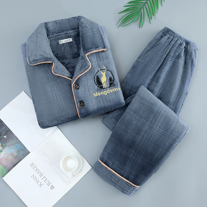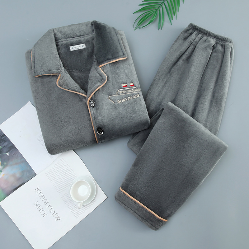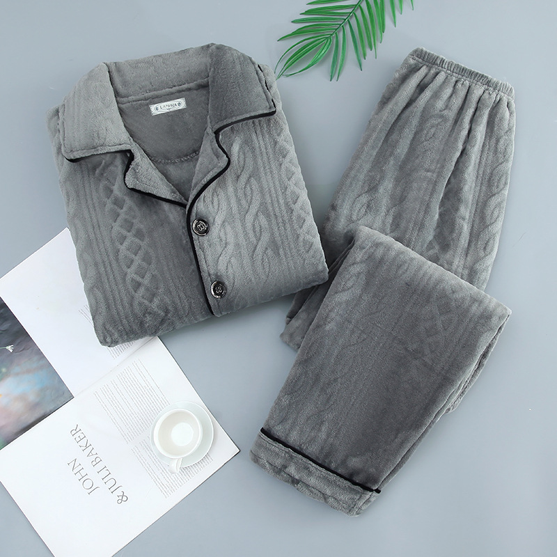 Главная страница > Пижама мужской осенью и зимой плюшевая утолщение теплый коралловый бархат плюс большой размер фланелевая домашняя одежда