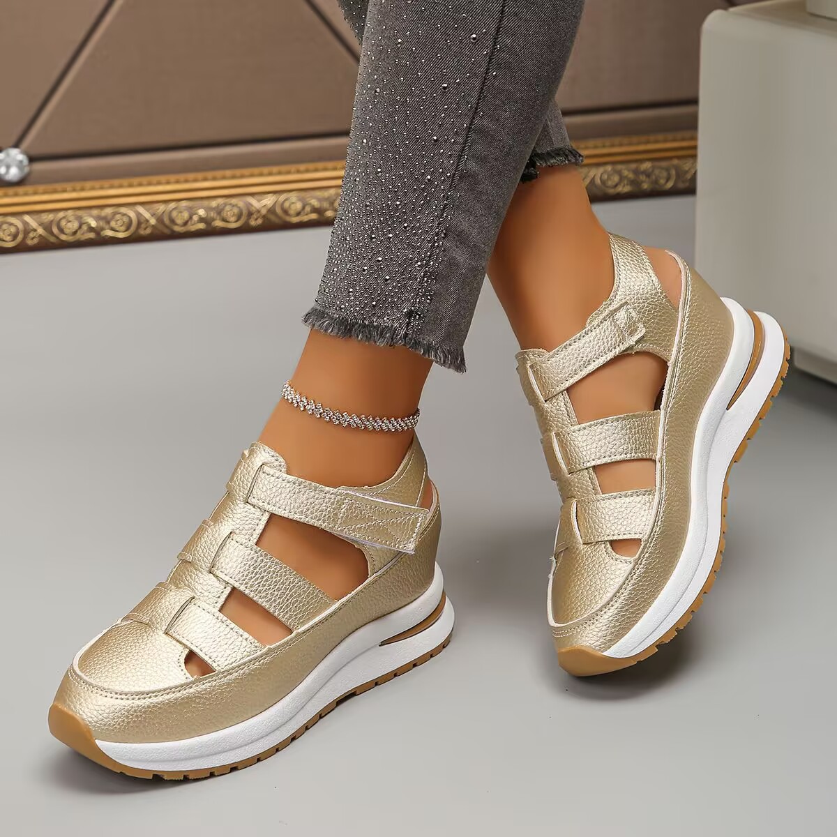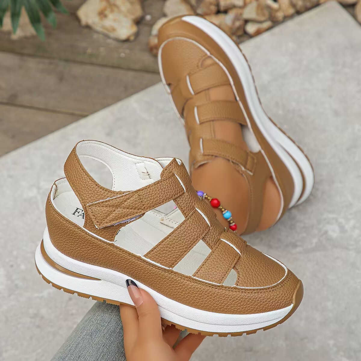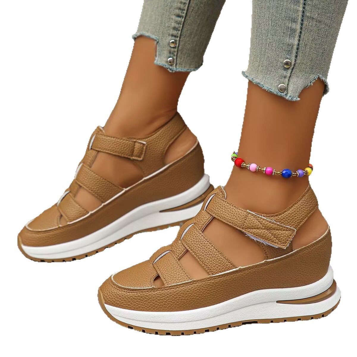 Главная страница > Новые летние босоножки на танкетке с закрытым носком, полым дышащим дизайном, платформой большого размера на толстой подошве и липучкой для женщин, размер 42.