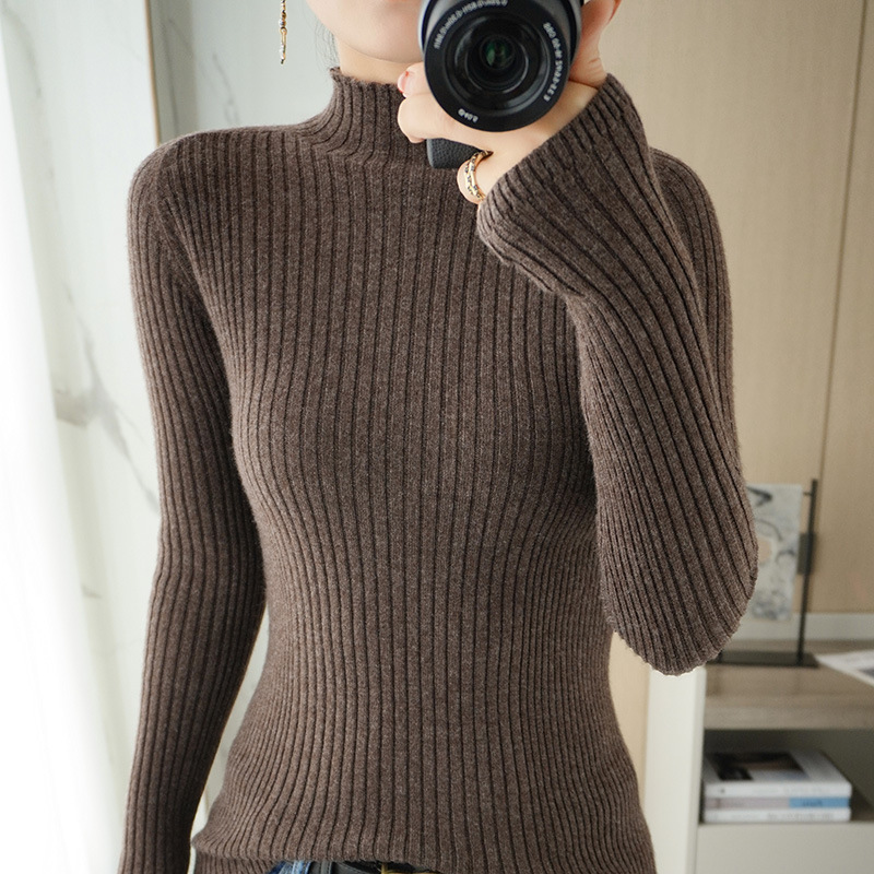Главная страница > Осенний новый стильный женский свитер с полувысоким воротником, длинными рукавами, облегающего кроя, из ребристой ткани, для повседневной носки и как верхняя одежда.