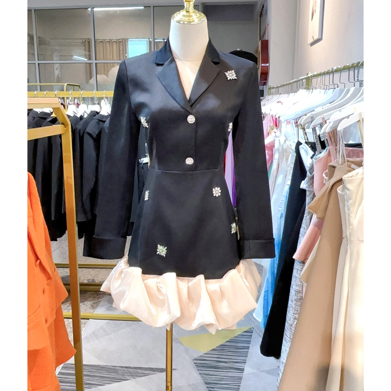 Оптовая продажа: Новое элегантное платье-костюм из органзы с длинным рукавом, стразами и асимметричным дизайном, коллекция Осень 2025
