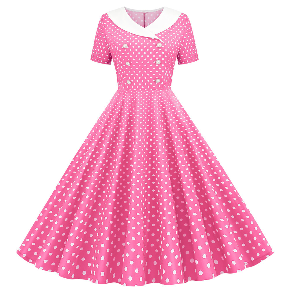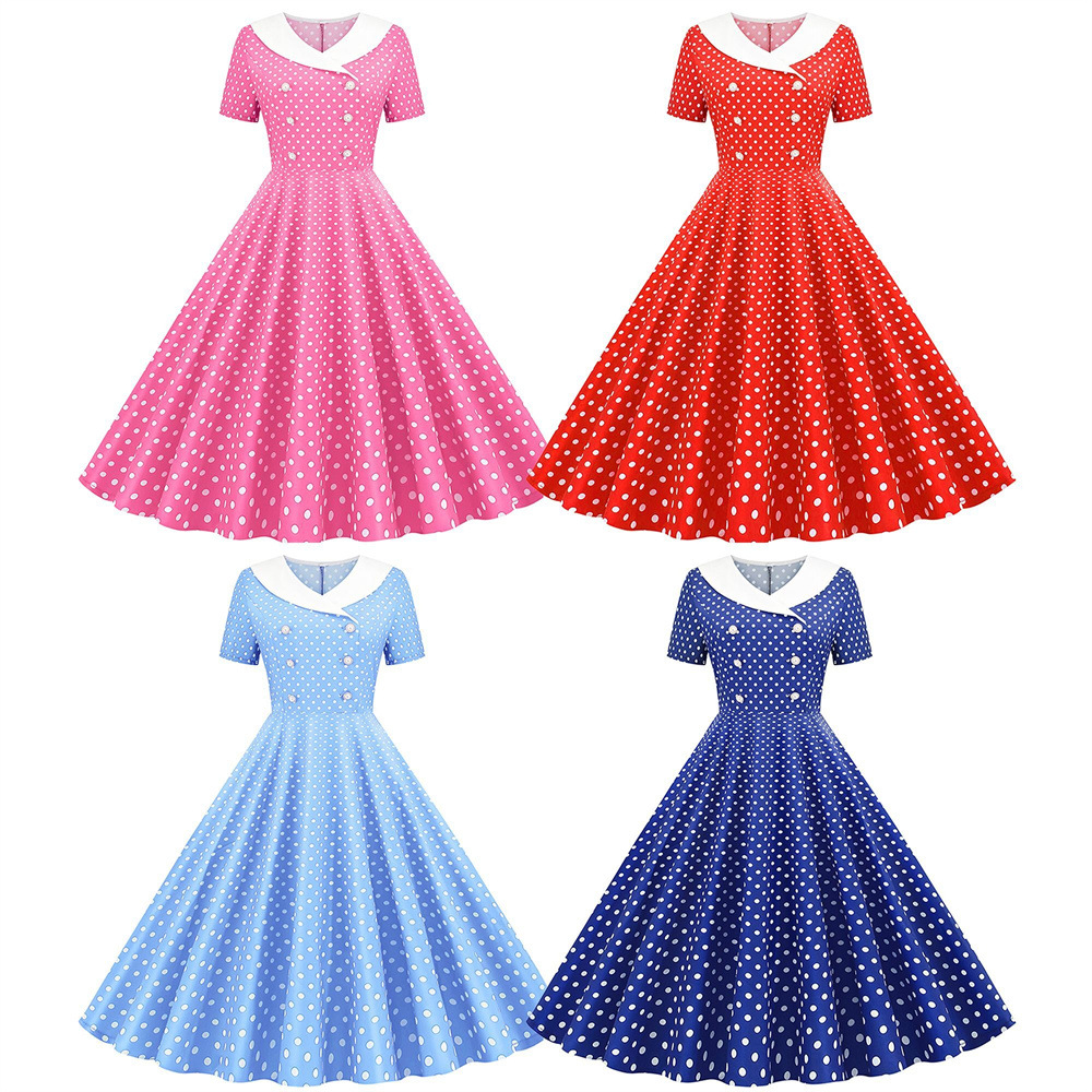 Заводская поставка Горячая Распродажа 2022 летнее Новое волновое точечное платье с коротким рукавом и V-образным вырезом двубортное платье с принтом