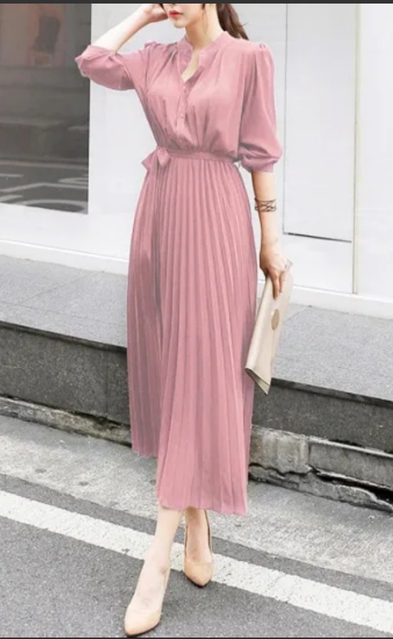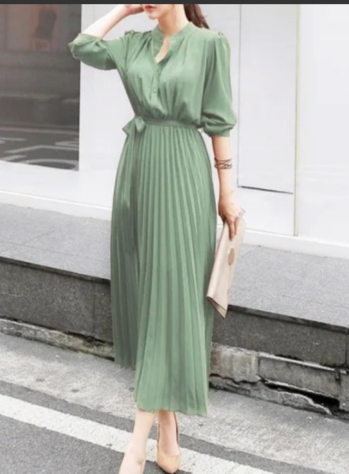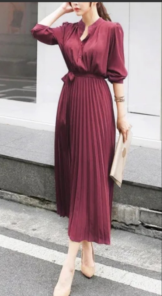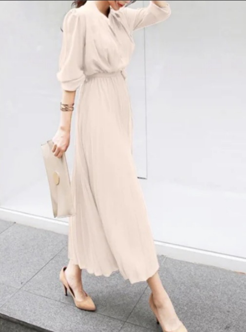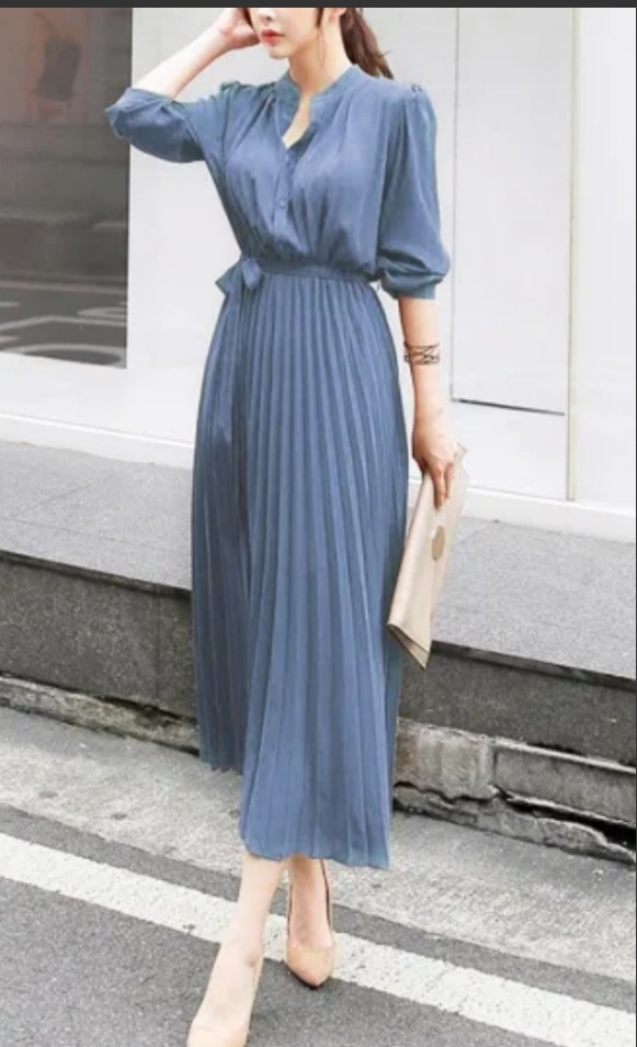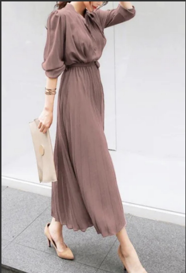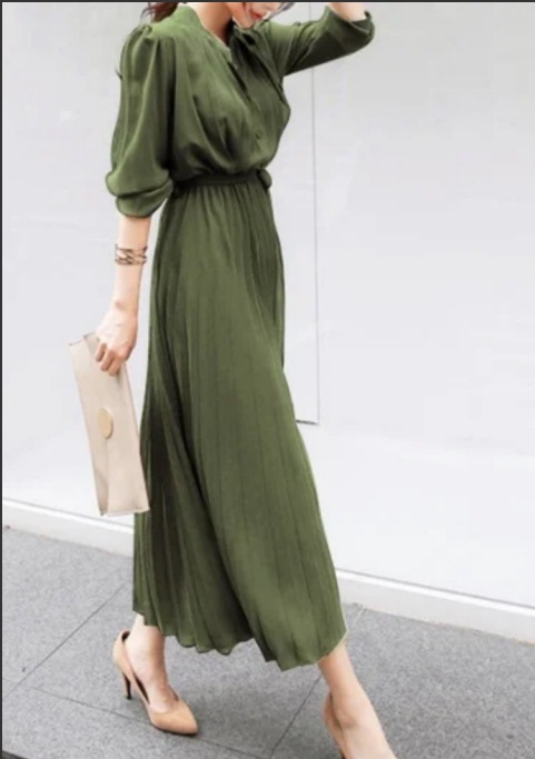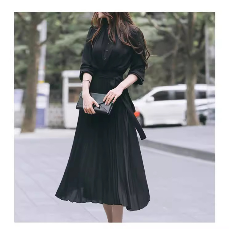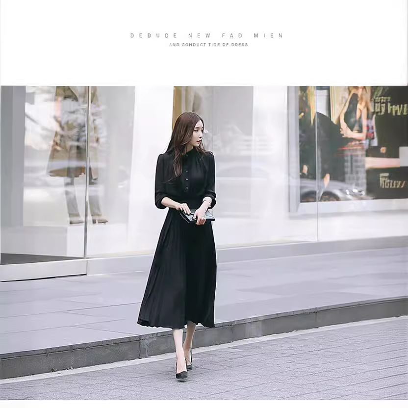 Главная страница > Новое плиссированное платье с длинными рукавами женское тонкая талия тонкая корейская длинная темпераментная плиссированная юбка 2024 весна и осень