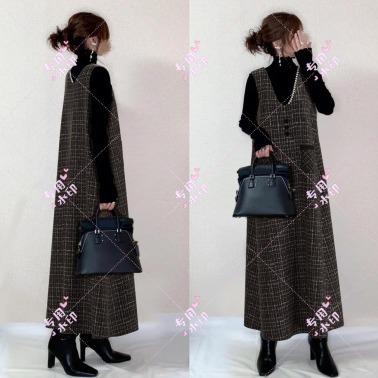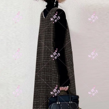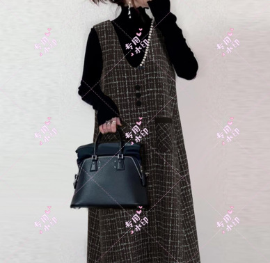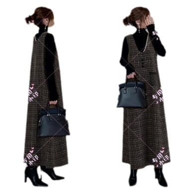 Главная страница > В наличии: Новинка осени-зимы 2025 – платье-жилет с V-образным вырезом, жемчужным декором, карманами и длинными клетчатыми рукавами без рукавов.