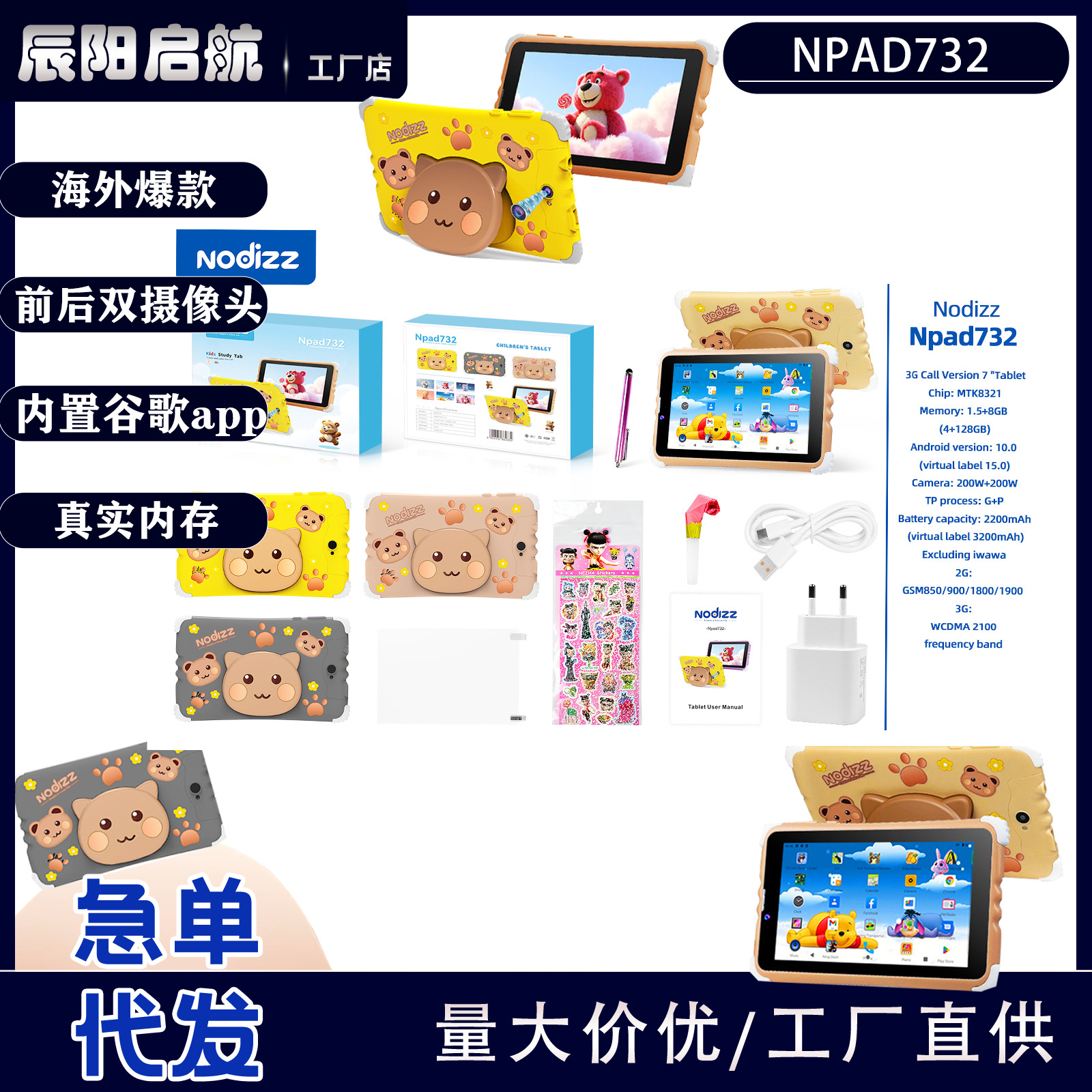 Эксклюзивная трансграничная поставка планшетов Npad732, детских планшетов, с полным доступом к TikTok, 5G+WiFi+SIM