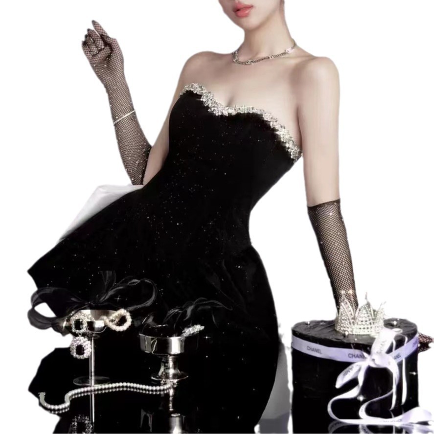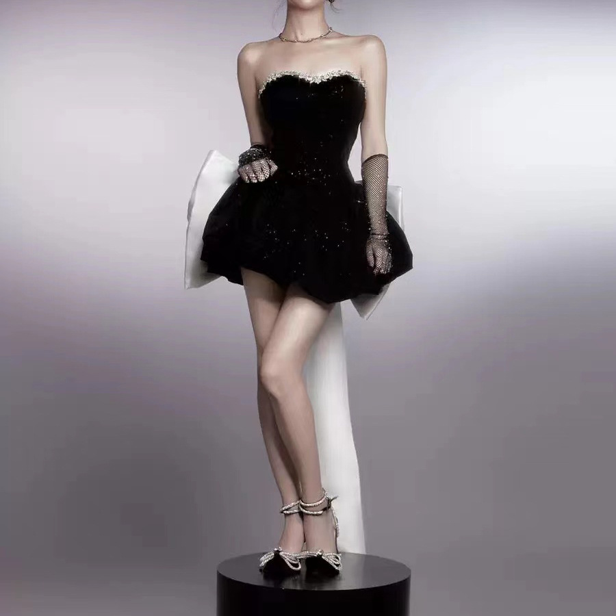 Главная страница > Черное платье-платье-платье-платье-юбка женская 2025 новый день рождения светлая роскошь темперамент платье-бант 1918
