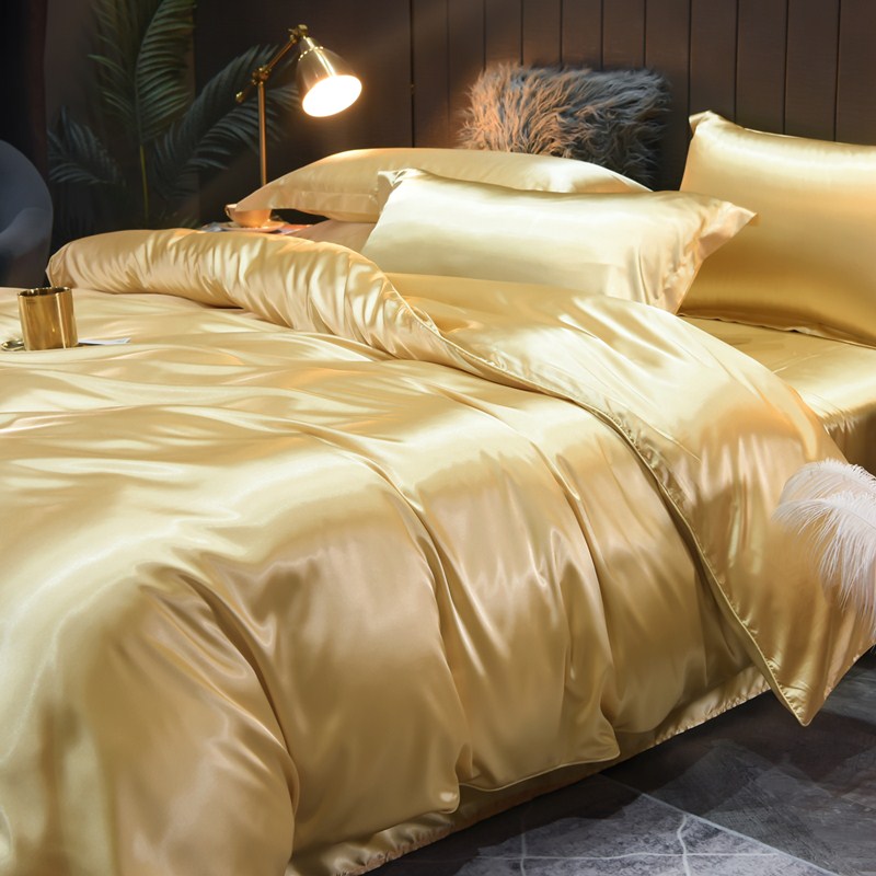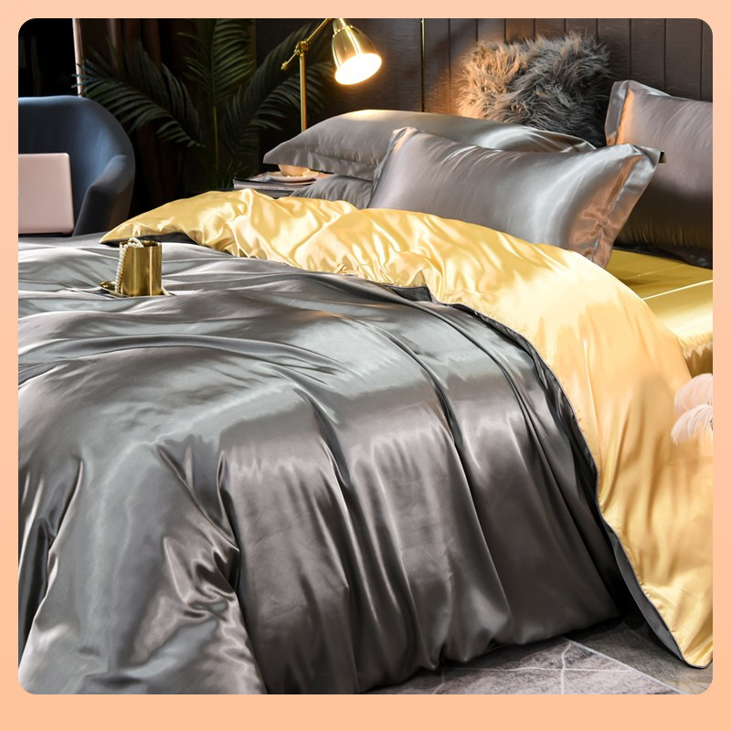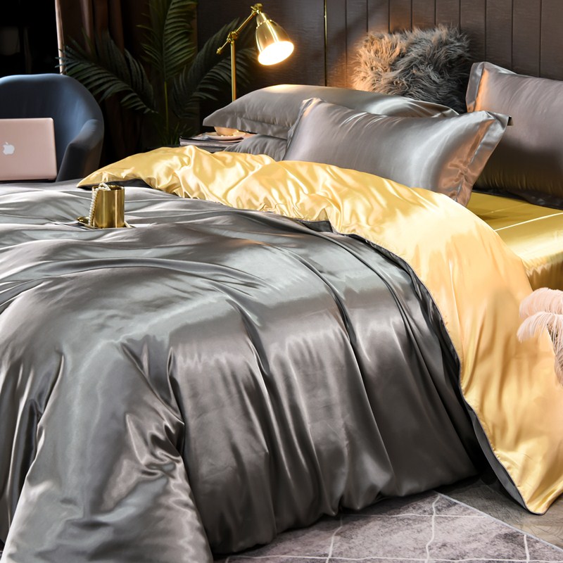 ◌ Летний шелковый комплект из четырех предметов: пододеяльник из тутового шелка, простыня из ледяного шелка, простыня на резинке из тенселя, имитация шелкового сатина для сна без одежды на кровати