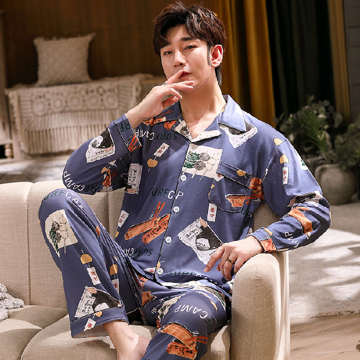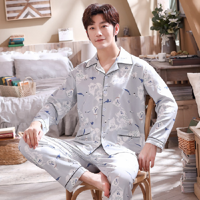 Главная страница > 2023 Новая весенне-осенняя Пижама, мужской Молодежный кардиган, тонкий свободный искусственный хлопок, домашняя одежда с героями мультфильмов, костюм, одежда для кондиционирования воздуха