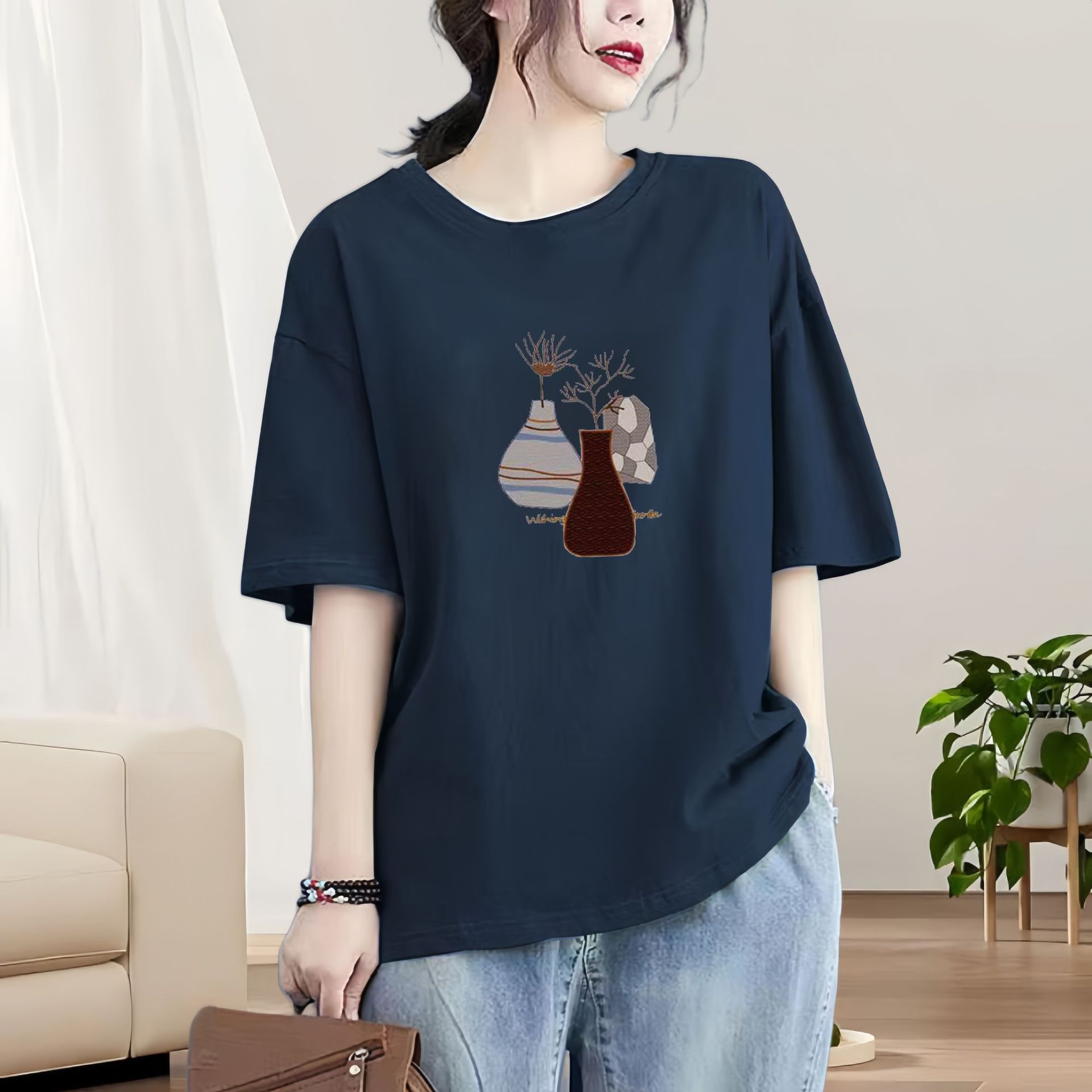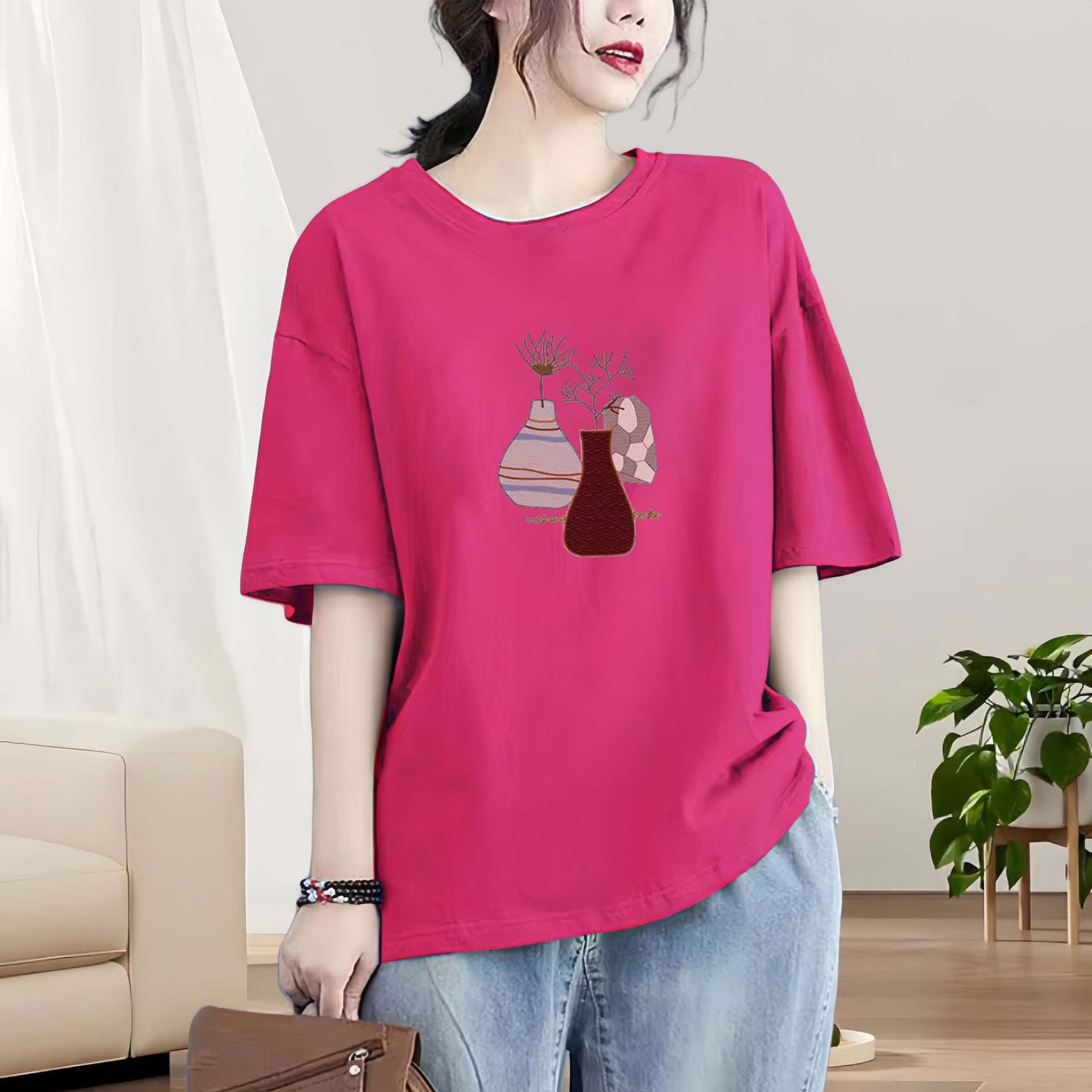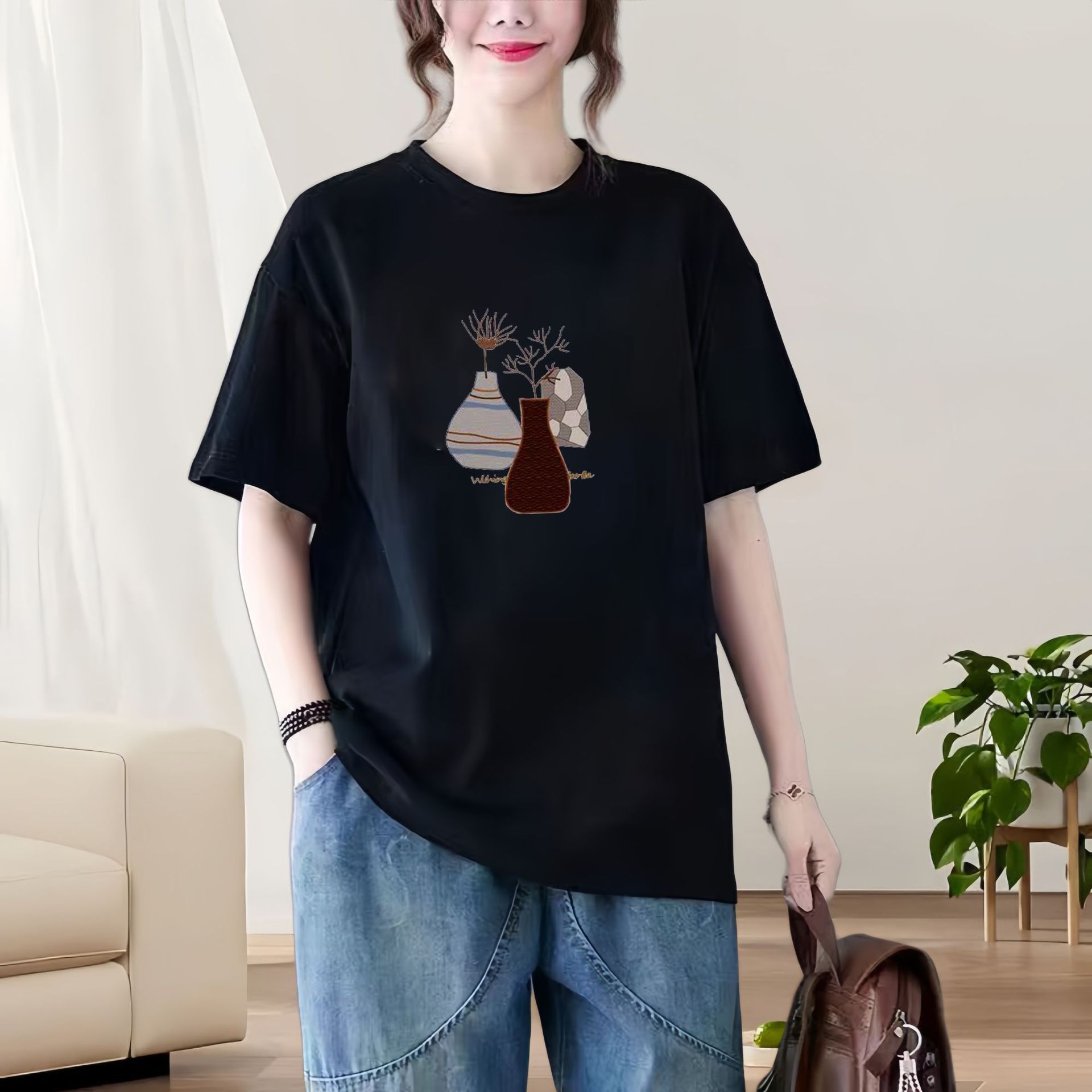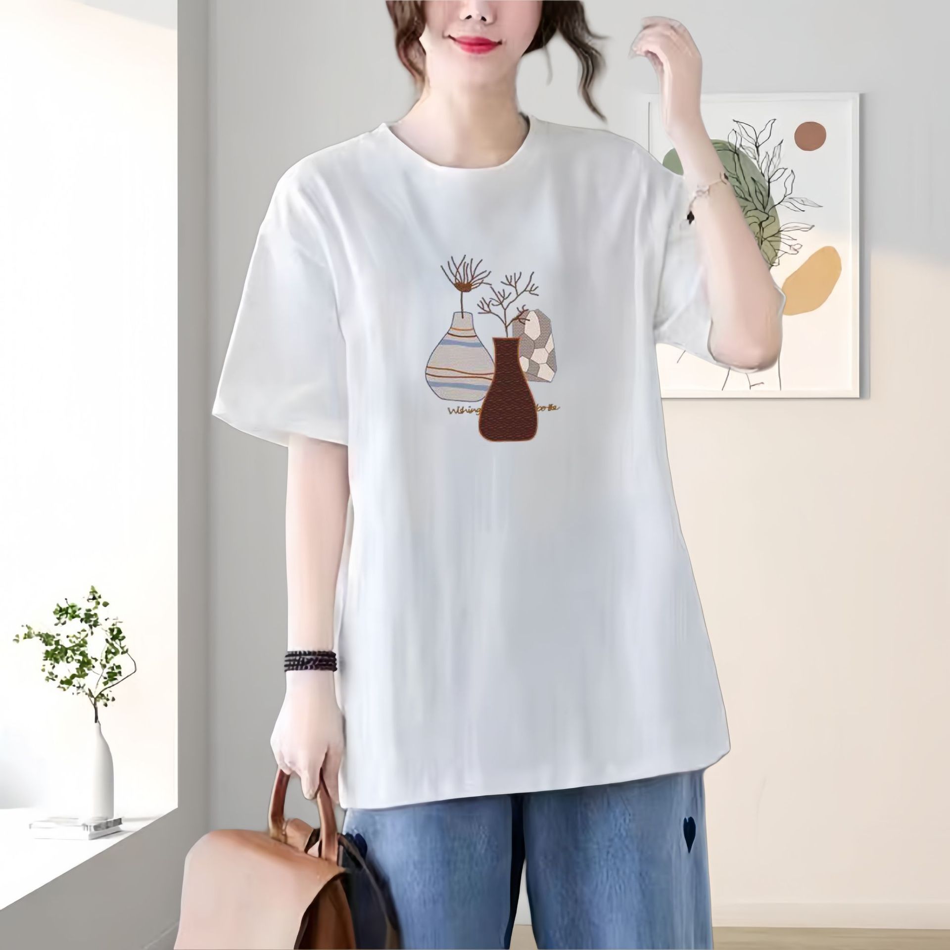 Главная страница > 2025 новая летняя одежда в корейском стиле для полных мм, свободная футболка большого размера, женские повседневные топы из чистого хлопка с короткими рукавами и принтом, уменьшающие возраст, ins