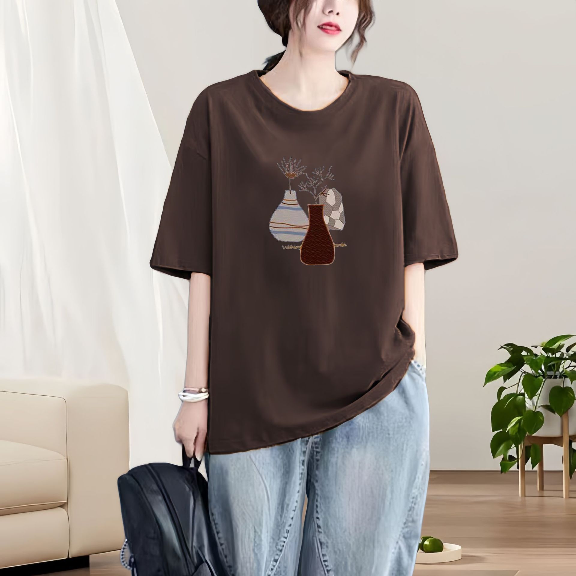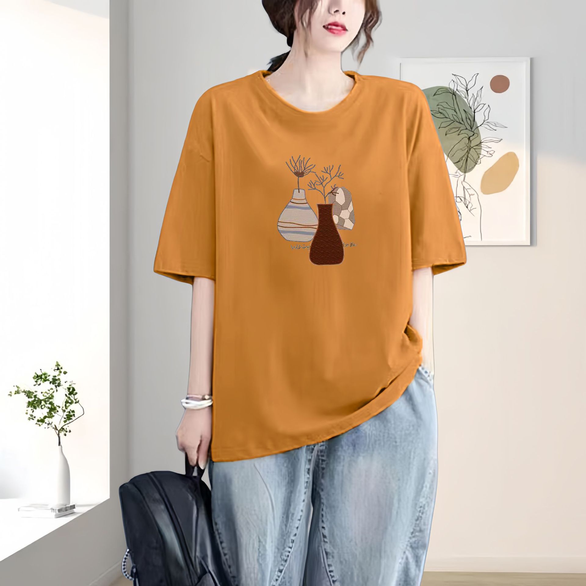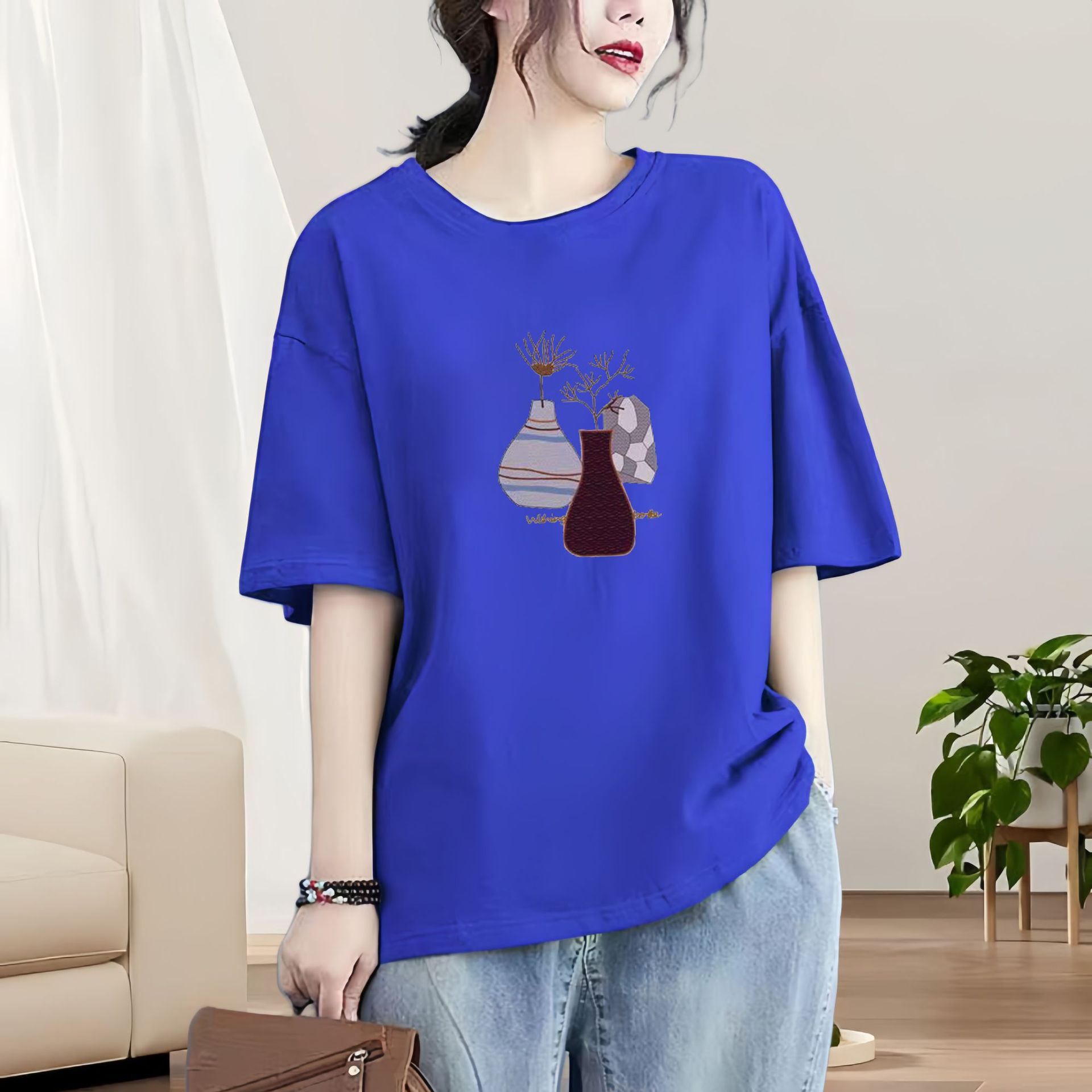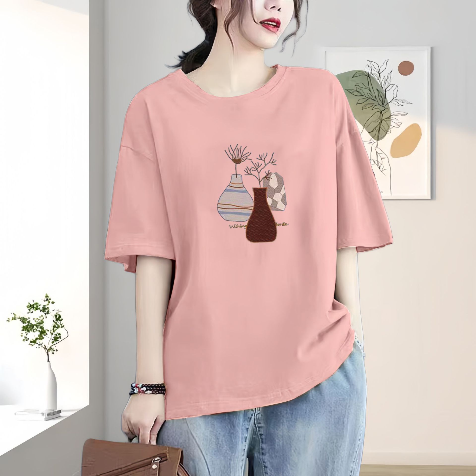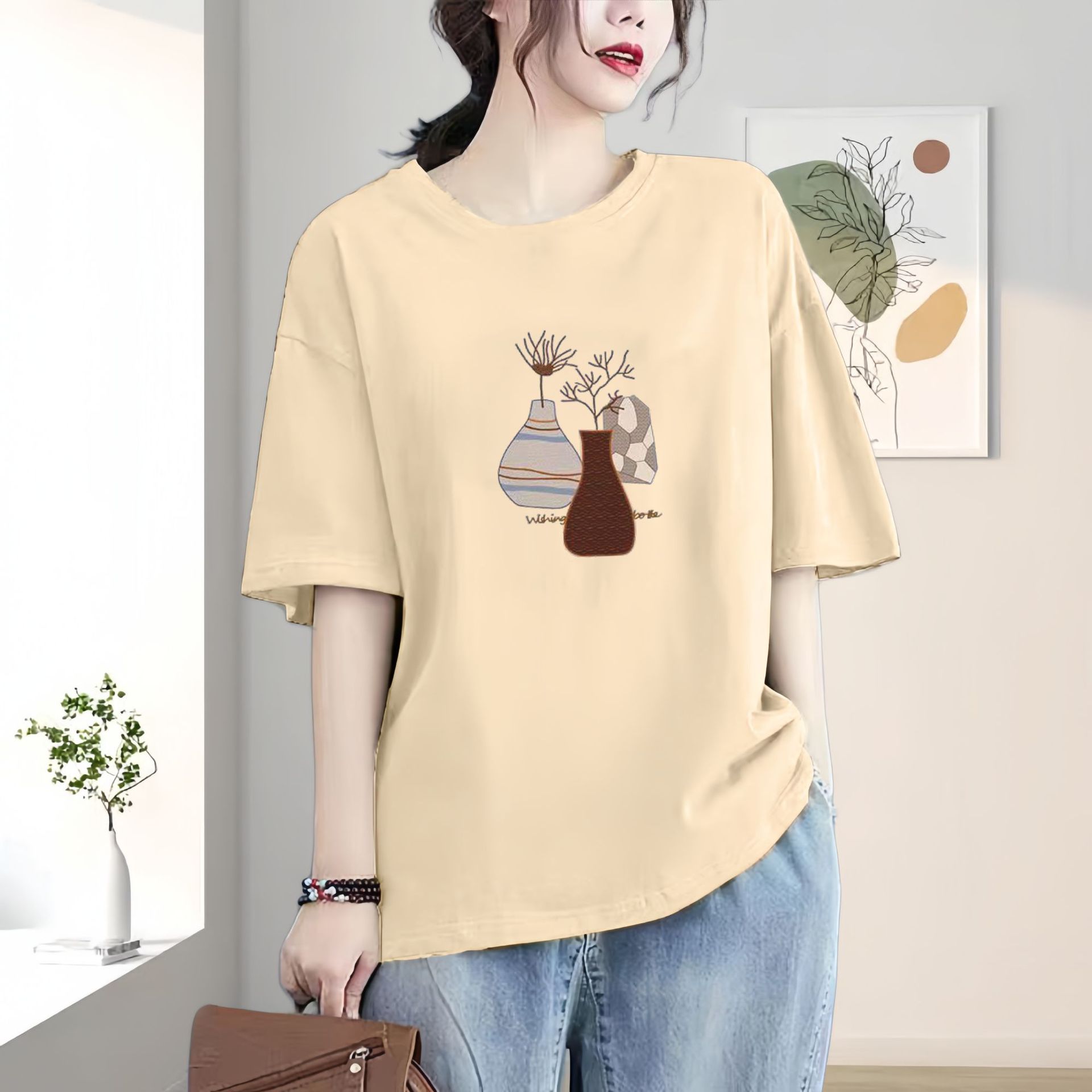 Главная страница > 2025 новая летняя одежда в корейском стиле для полных мм, свободная футболка большого размера, женские повседневные топы из чистого хлопка с короткими рукавами и принтом, уменьшающие возраст, ins