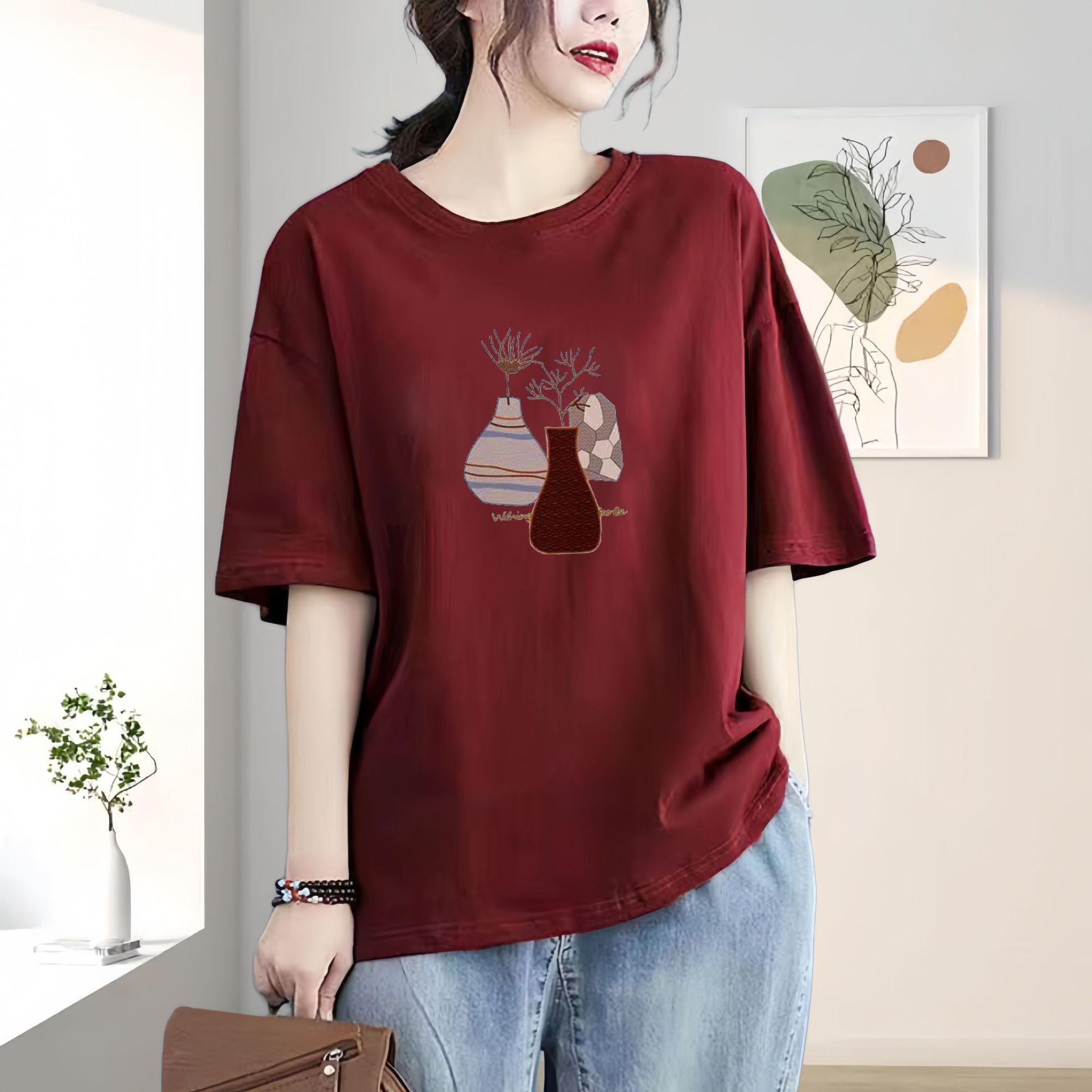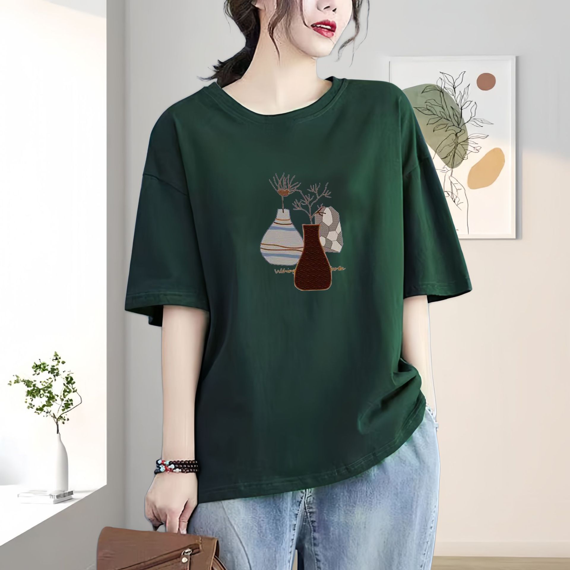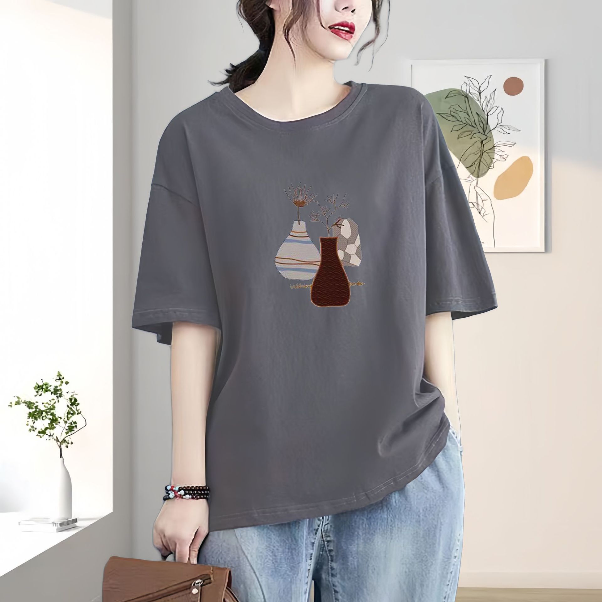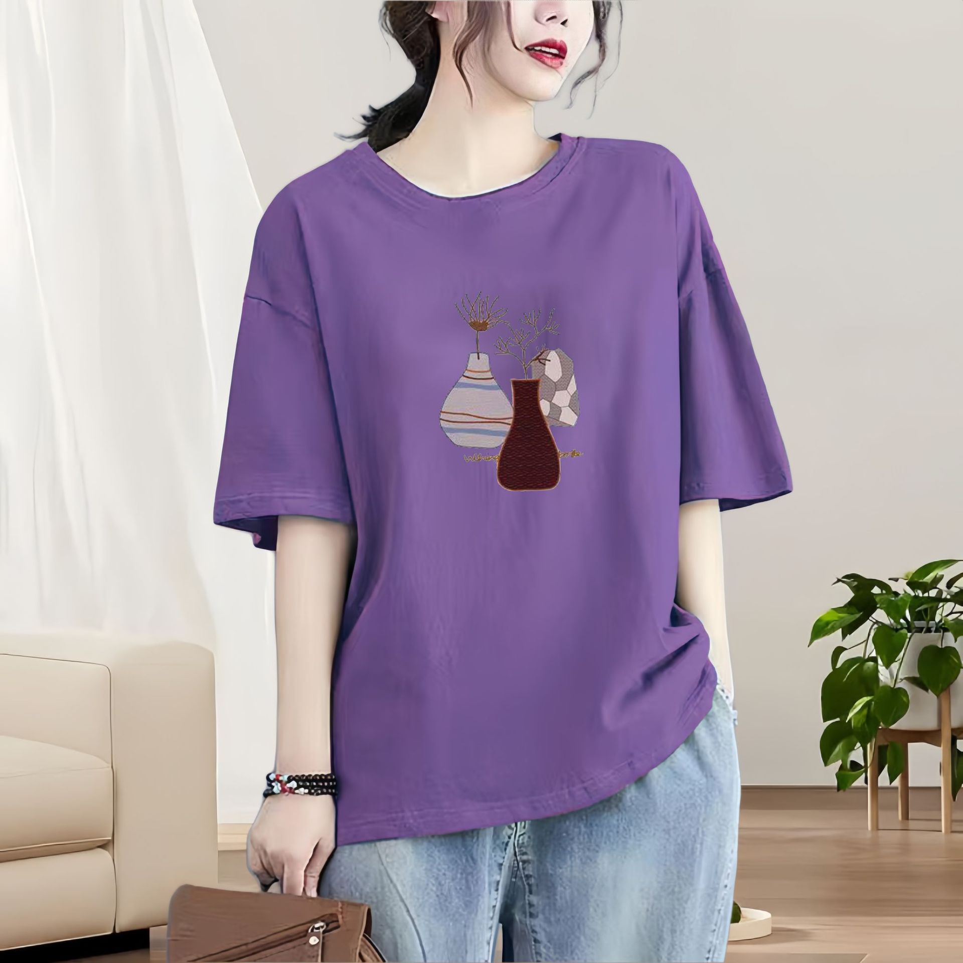 Главная страница > 2025 новая летняя одежда в корейском стиле для полных мм, свободная футболка большого размера, женские повседневные топы из чистого хлопка с короткими рукавами и принтом, уменьшающие возраст, ins