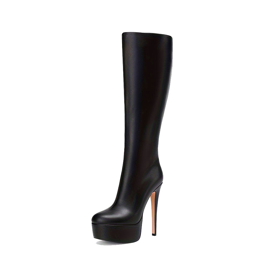 Главная страница > Новые модные универсальные женские сапоги на высоком каблуке-шпильке с круглым носком и боковой молнией в европейском и американском стиле, большие размеры для внешней торговли