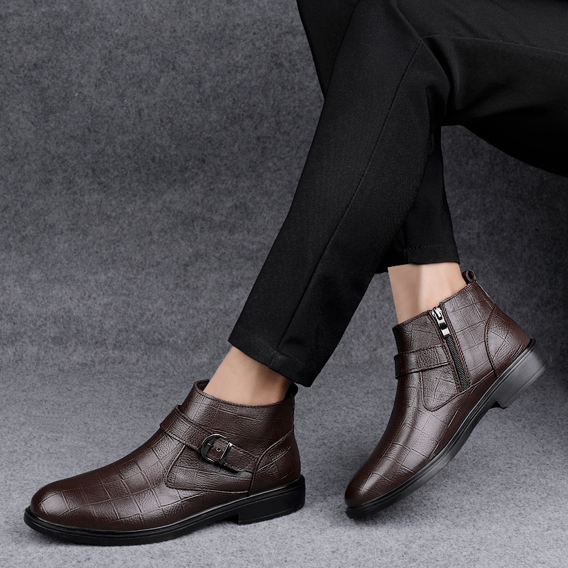 Главная страница > 8208 Мужская обувь короткие сапоги голые сапоги с высокой стопой Осень-Зима теплые кожаные сапоги для отдыха на флисовой подкладке Большие размеры отцовская обувь